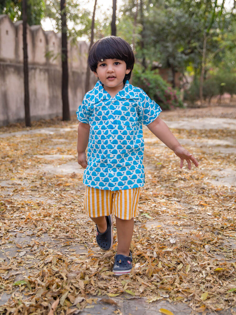 Set of 2 - Ocean Splash Organic Cotton Printed Shirt & Shorts