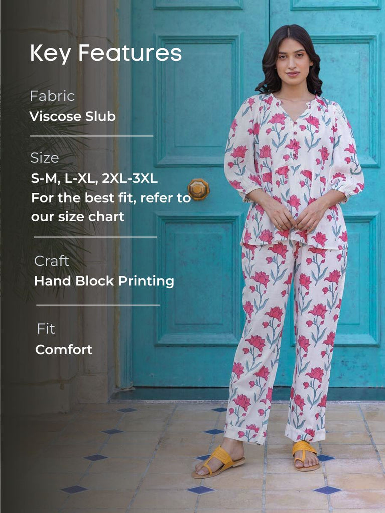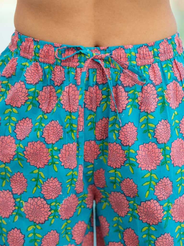 Tiny Tulip Block Printed Cotton Travel Vanity Case