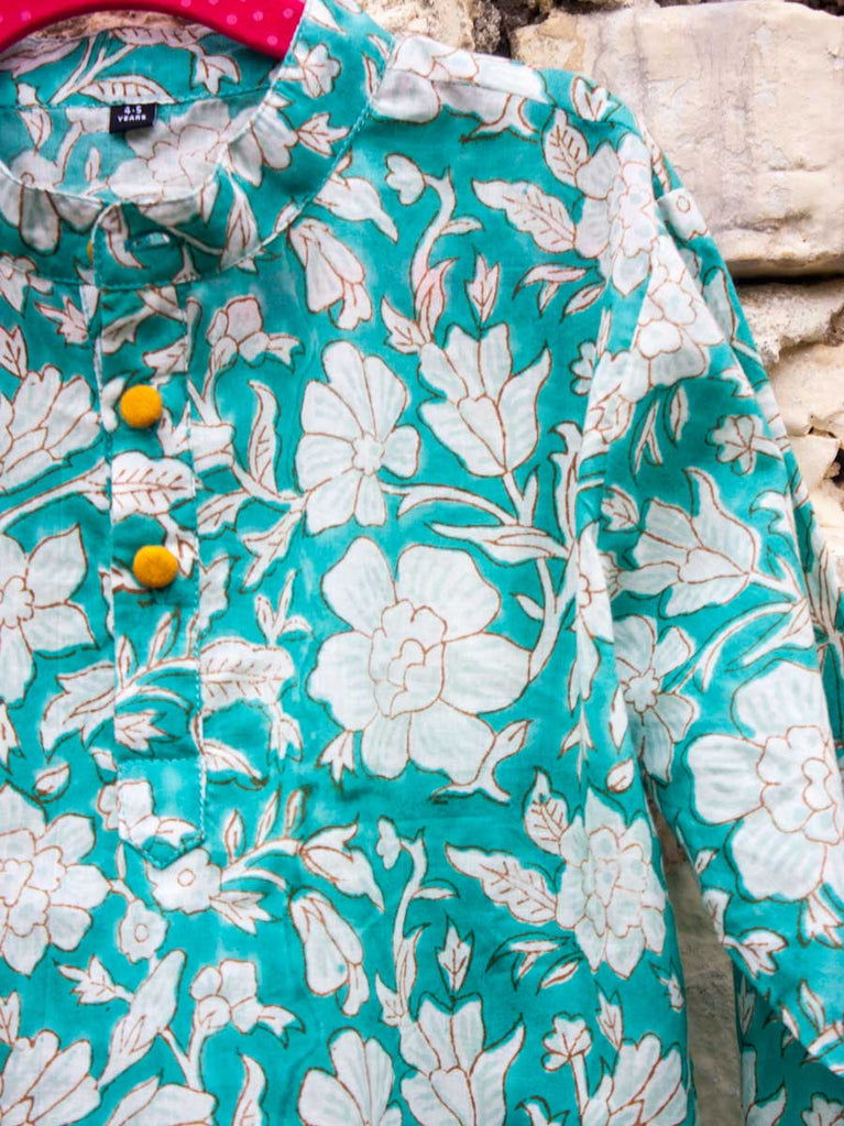 Floral Organic Cotton Shirt Kurta with Roll Up Sleeves