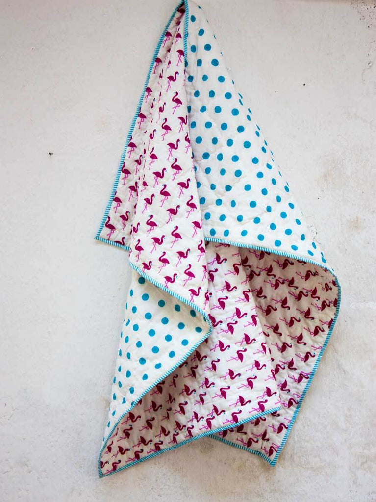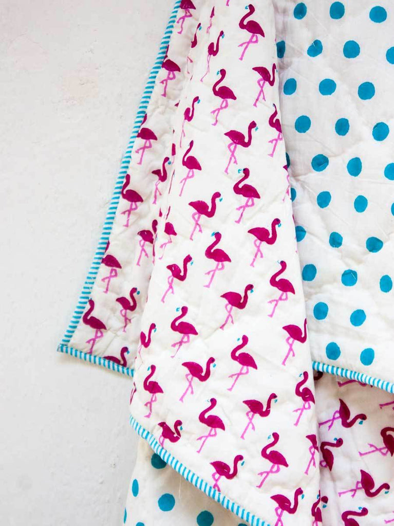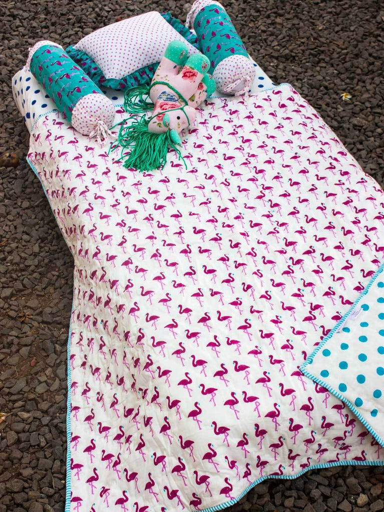 Flamingo Quilted Organic Cotton Block Printed Angrakha Set