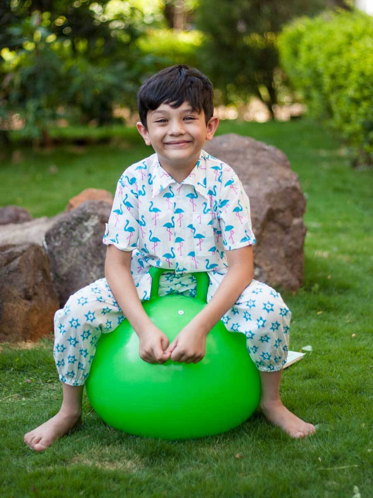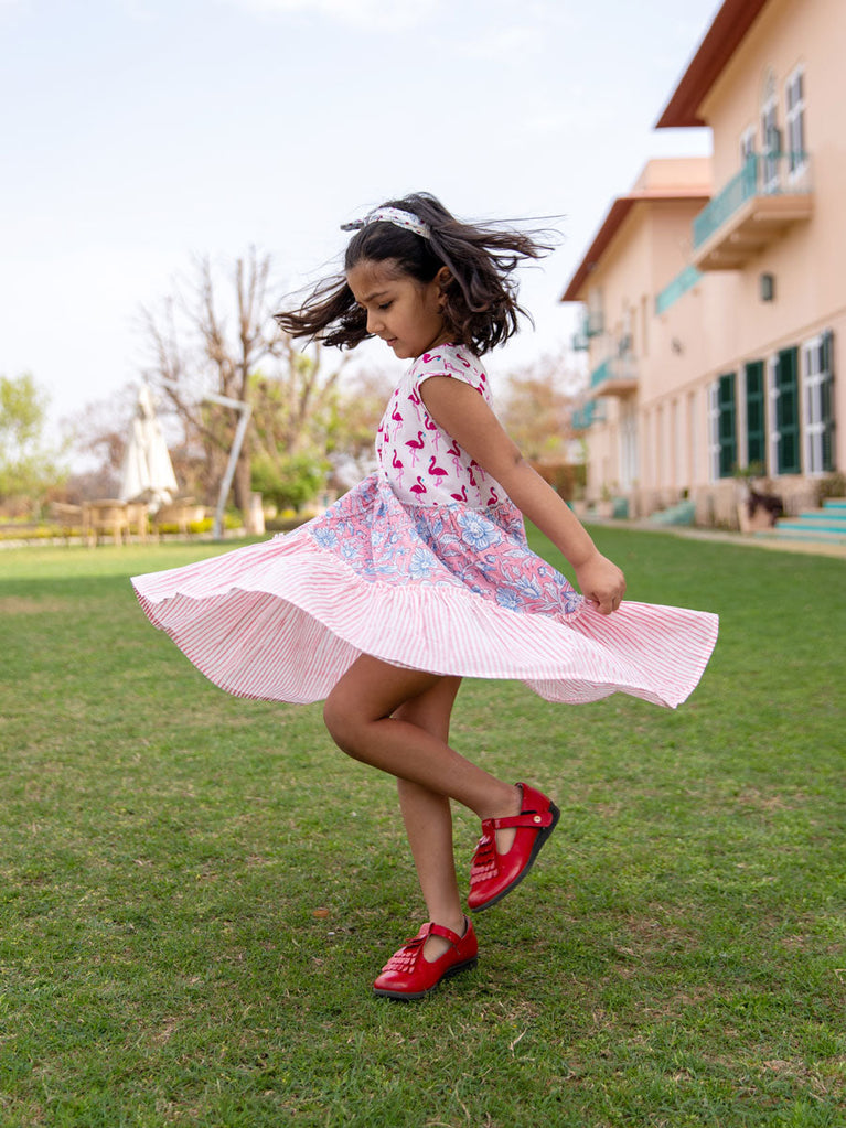 Flamingo Organic Cotton Block Printed Kaftan for Kids