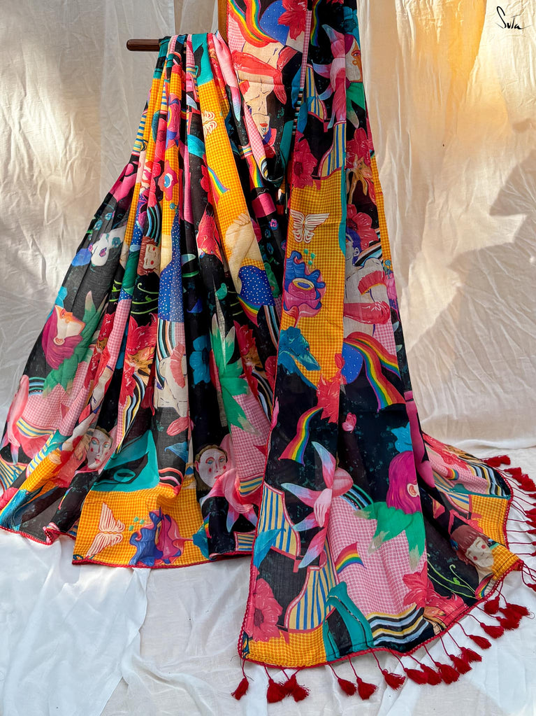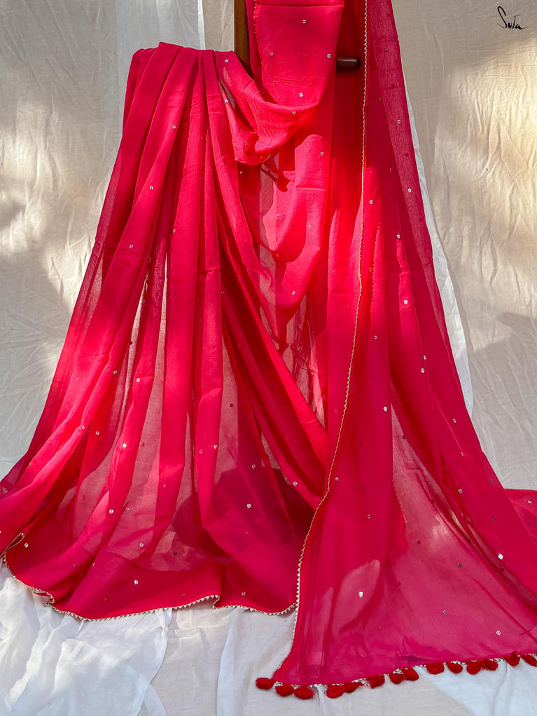 The mul cotton is what we call ˜made in heaven at Suta. Known in West Bengal as mul mul, the fabric is buttery soft and delicately beautiful. The weave of this fabric is very fine, and this lends a very fluid texture to it that makes draping it a breeze. It is truly like a hug that wraps you in its love!