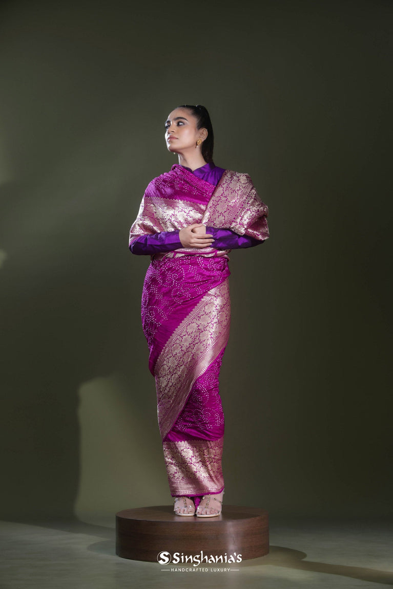 Fuchsia Purple Bandhani Kanjivaram Saree
