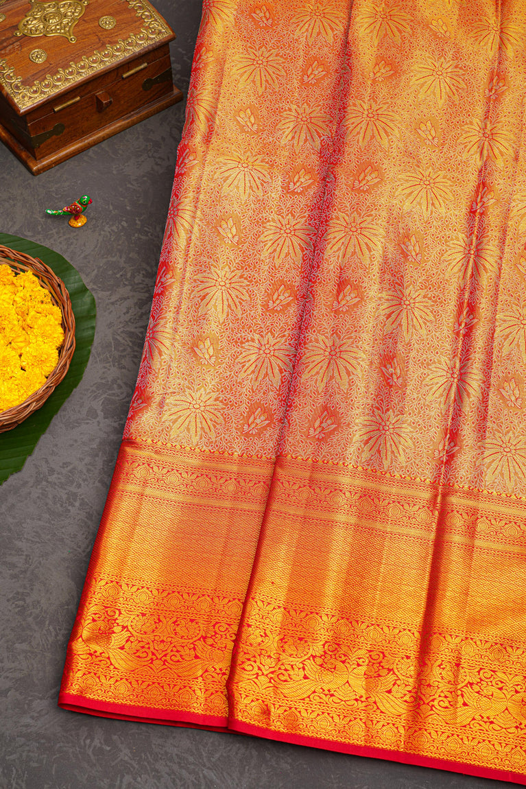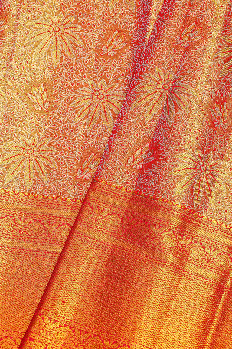 GOLD ORANGE and GOLD FLORAL JAAL SILK Saree with KANCHIPURAM