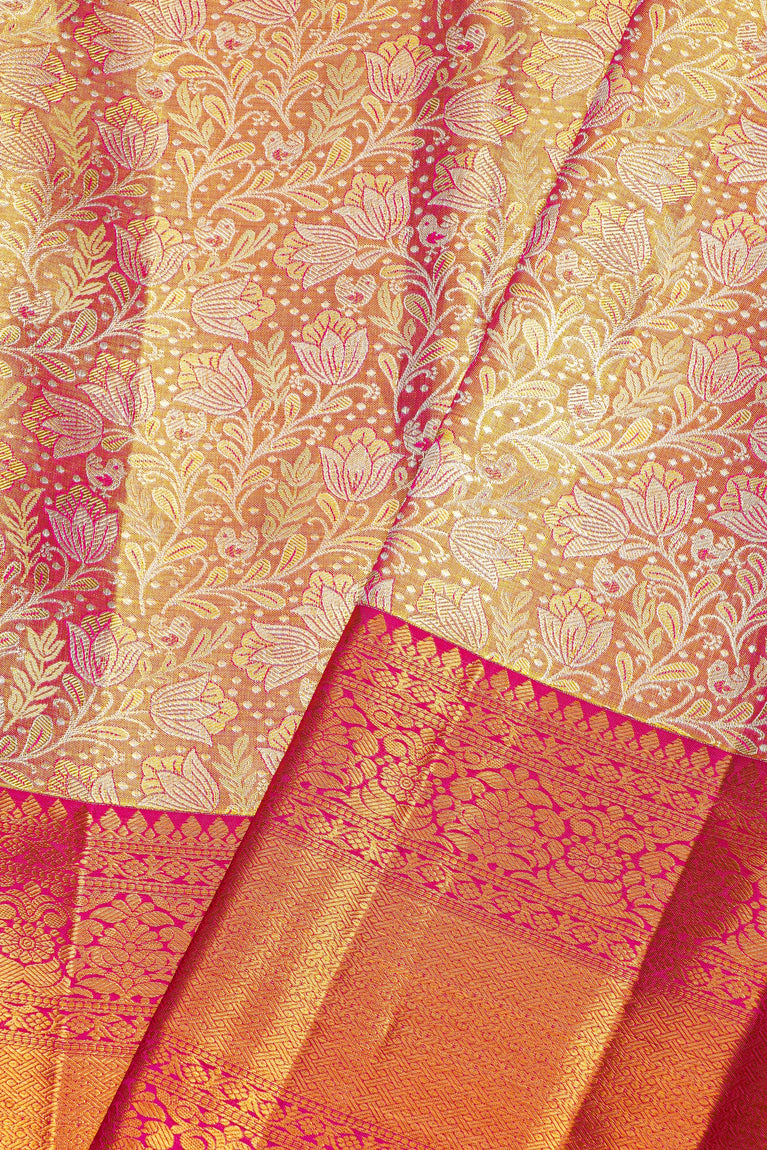 GOLD PINK and PINK FLORAL JAAL SILK Saree with KANCHIPURAM