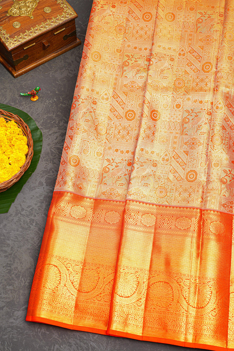 Georgia Peach Heritage Kanjivaram Silk Saree