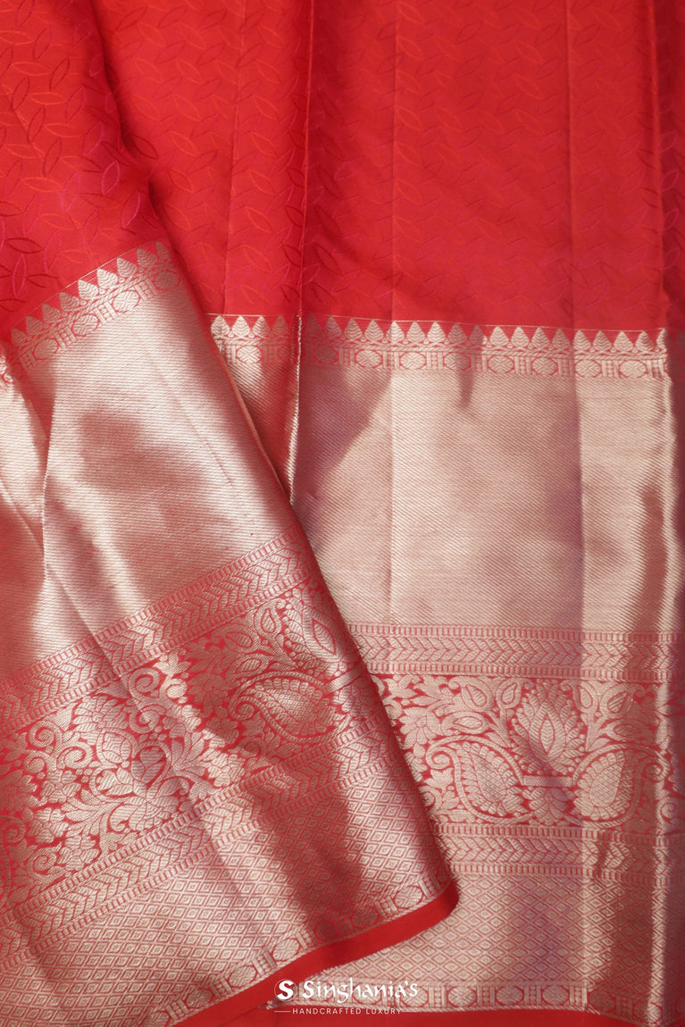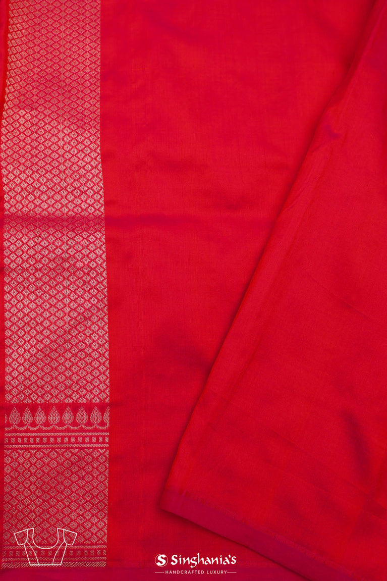 Exquisitely handwoven, this Kelly Green Kanjivaram Silk Saree features an ornate silver zari floral jaal design and contrasting red border designed with with floral and kaddi pattern. An elegant saree for festivities and weddings.