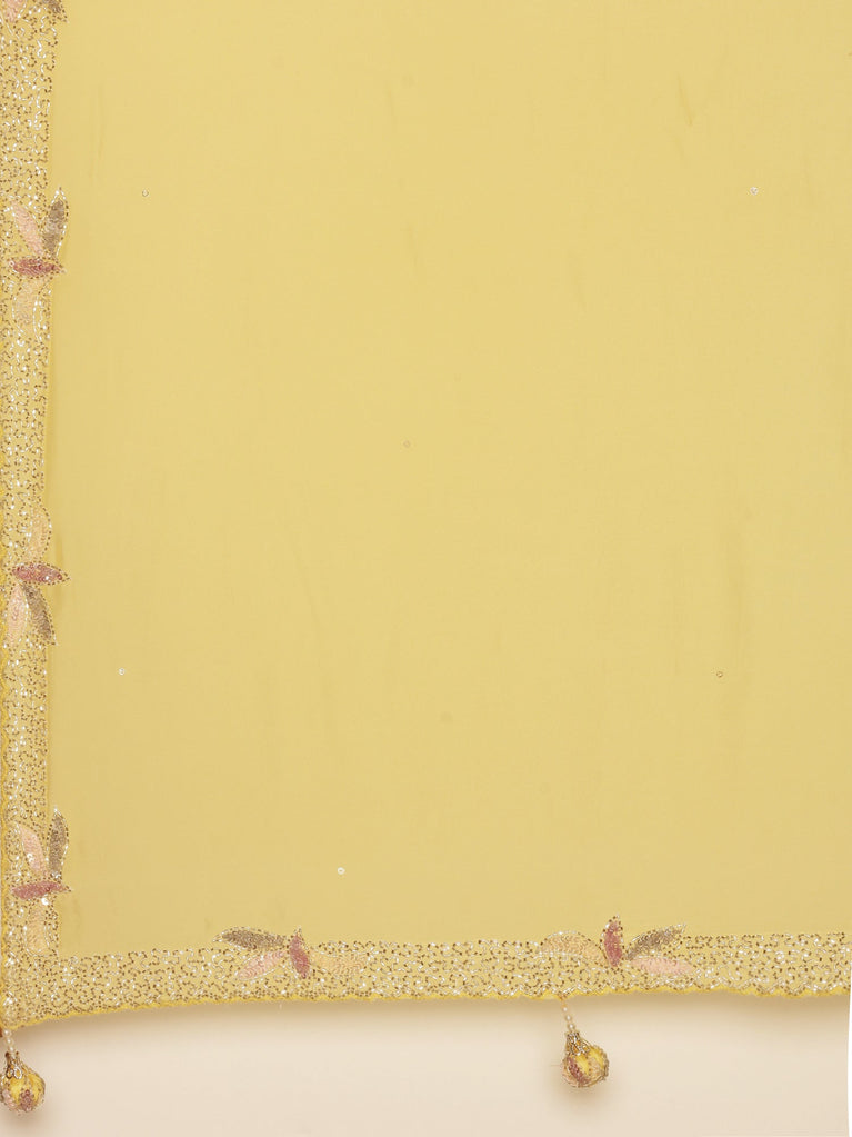 Lemon Crepe Sequins Saree With Readymade Blouse