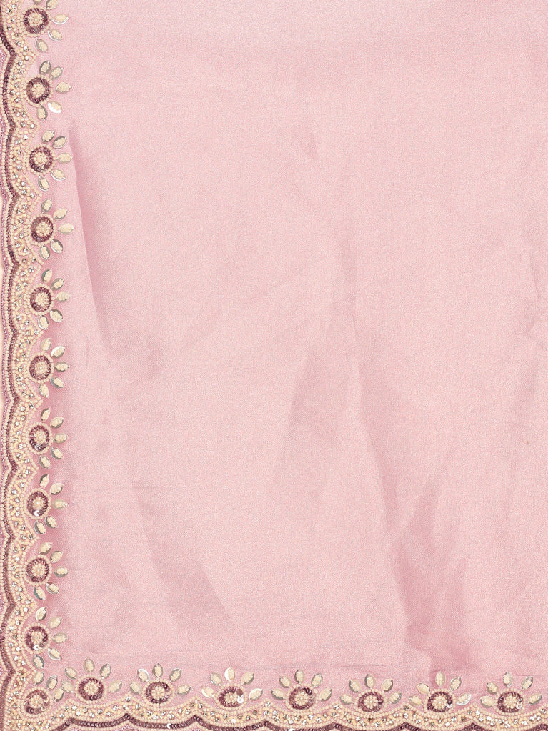 This elegant lavender Jimmy tissue saree features delicate pearls and beads embroidery, adding a touch of refined charm. Paired with a heavy ready-made blouse, it offers a perfect blend of tradition and style, making it ideal for special occasions. Comfortable to drape and visually stunning, this saree enhances your grace while providing ease of wear.