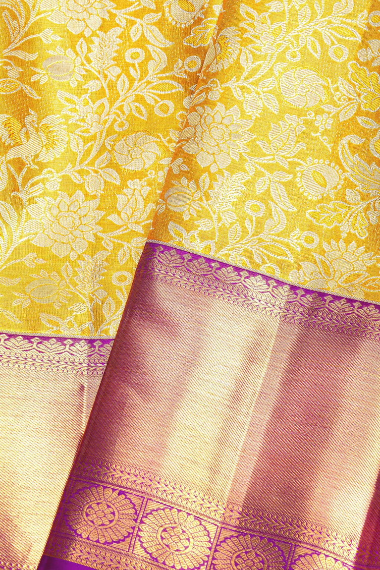 LEMON YELLOW and PURPLE FLORAL JAAL SILK Saree with KANCHIPURAM