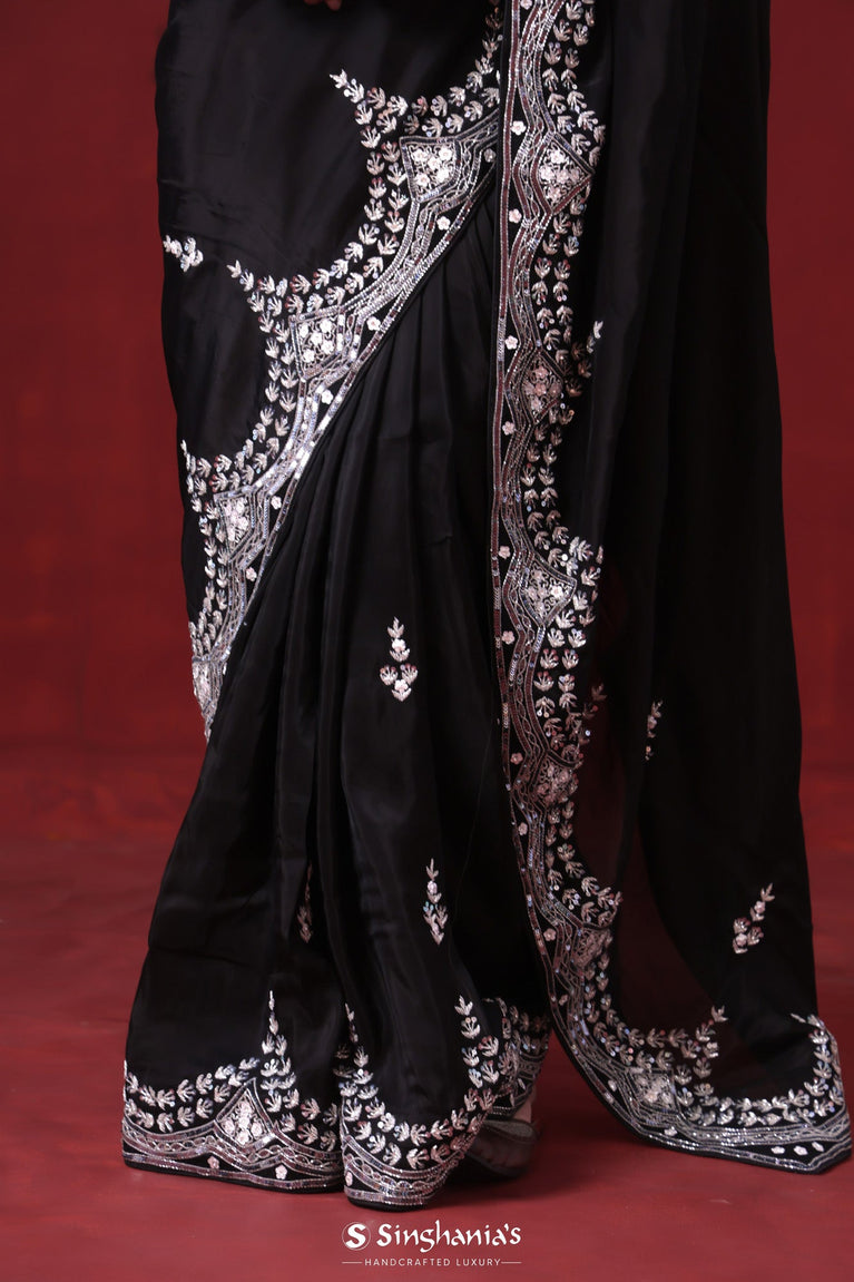 Night Black Tissue Organza Saree With Hand Embroidery