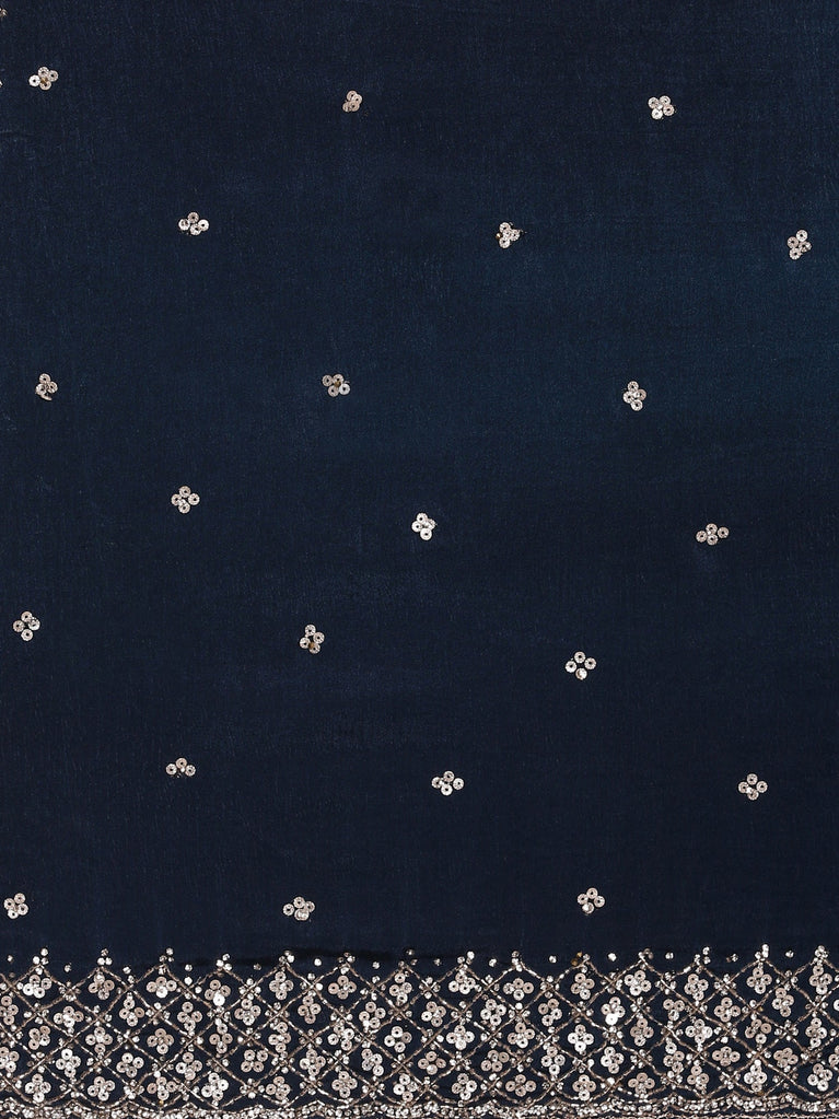 Navy Blue Satin Stone And Thread Embroidery Saree