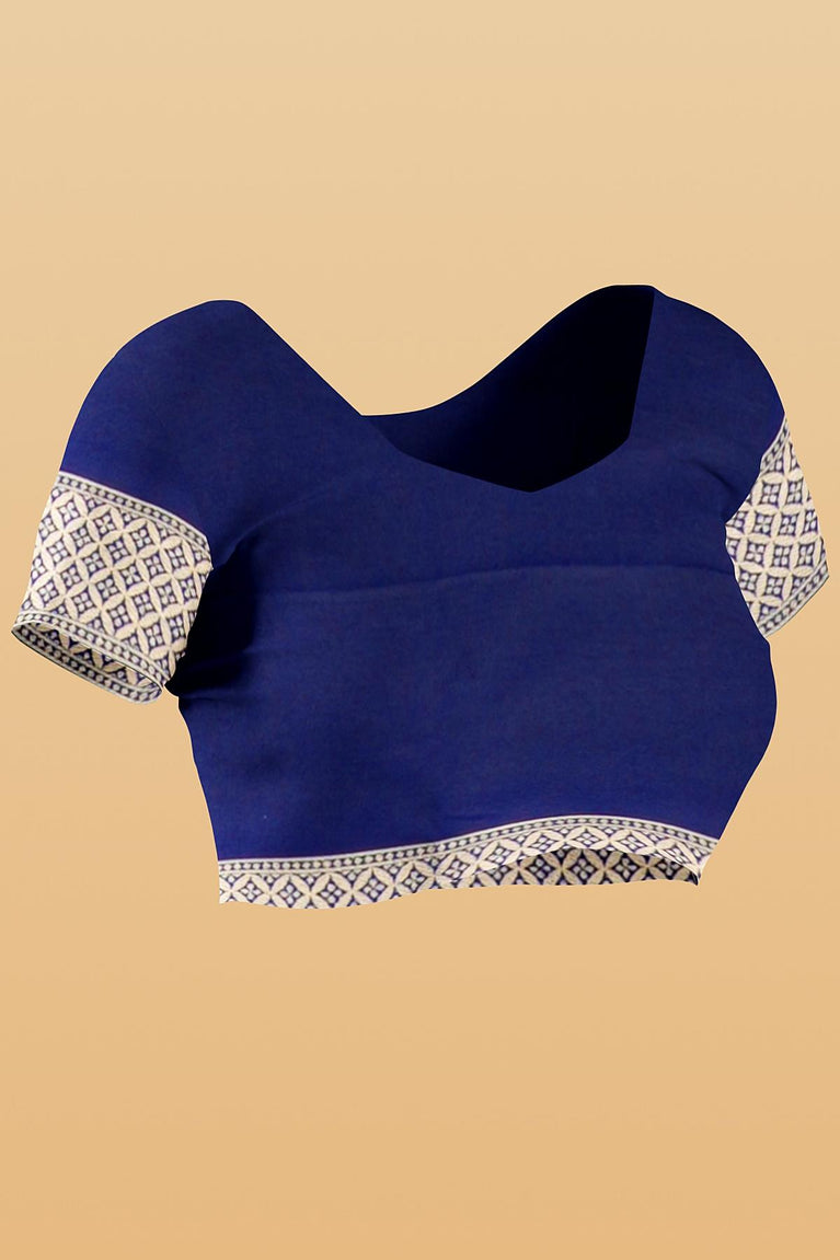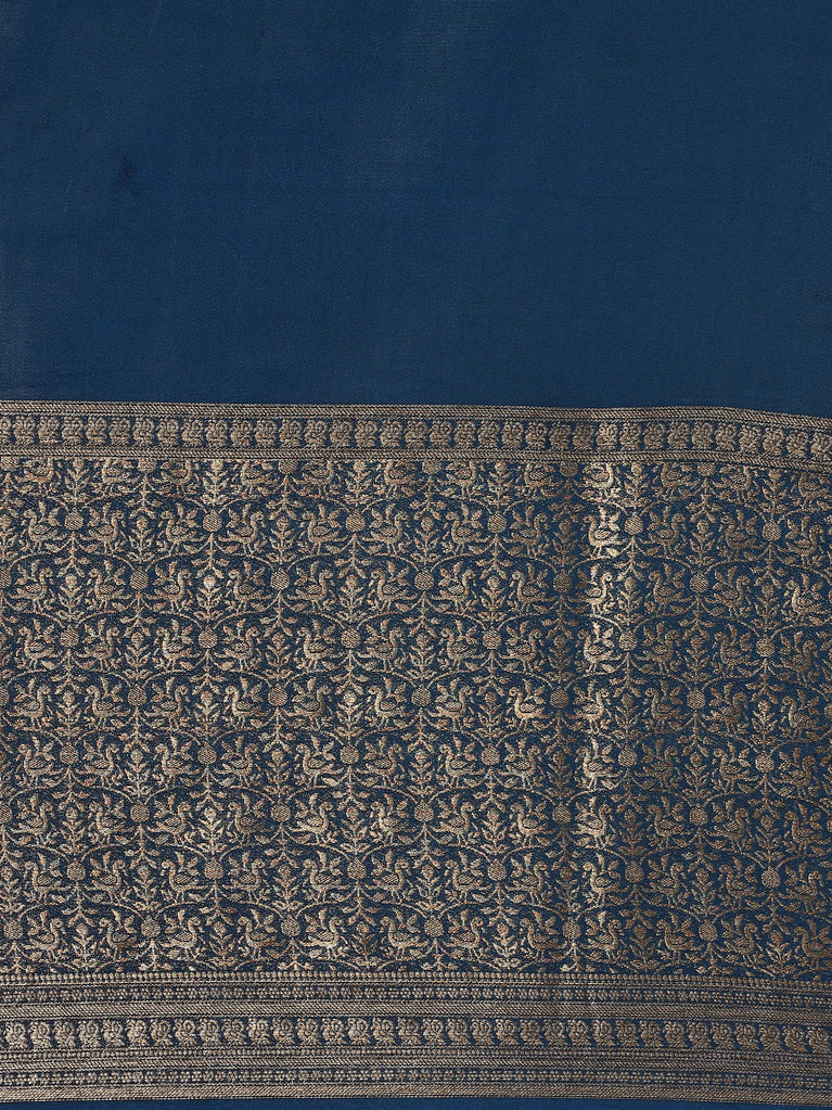 Navy Blue Mysore Crepe Saree With Zari Jaal Border