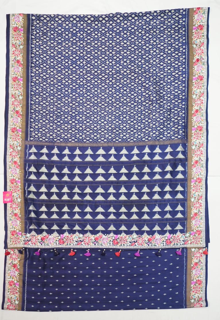 Navy Blue Handloom Patola Saree With Designer Petite Point Embroidery Border