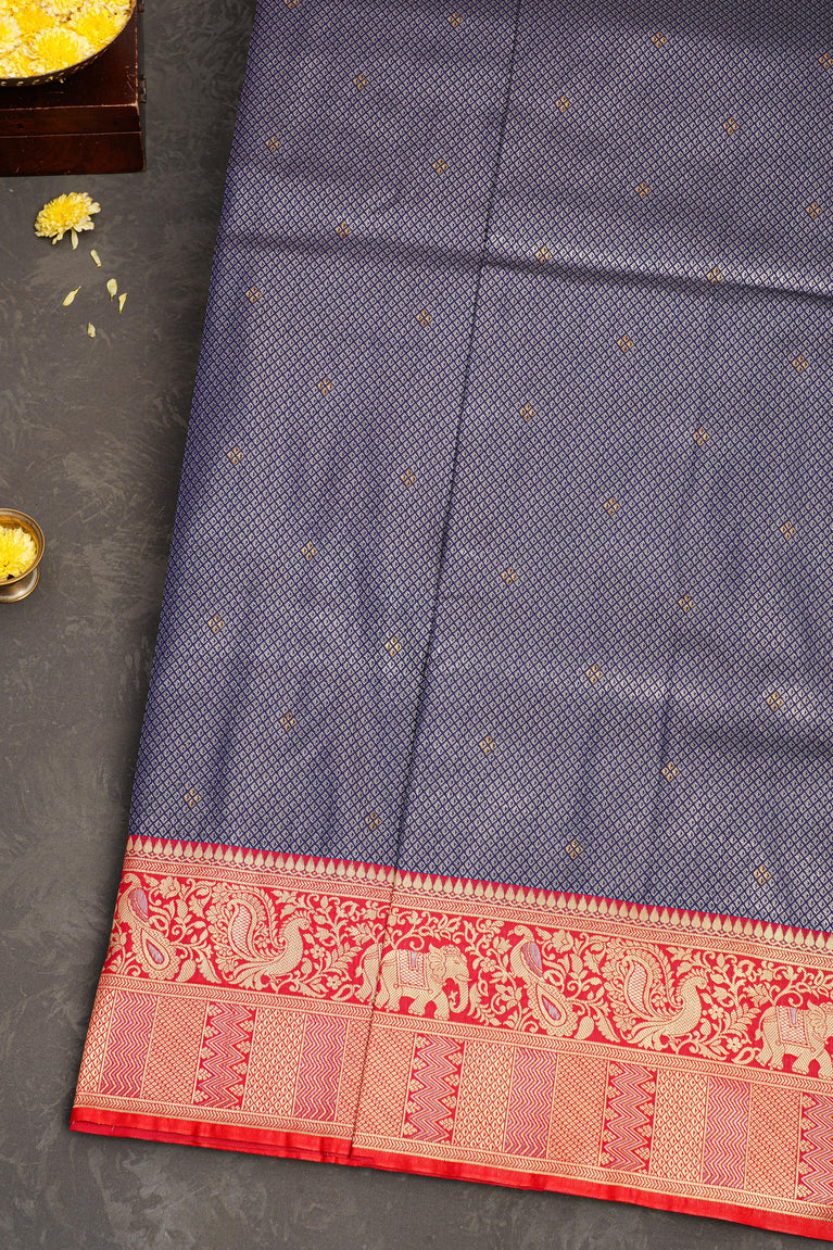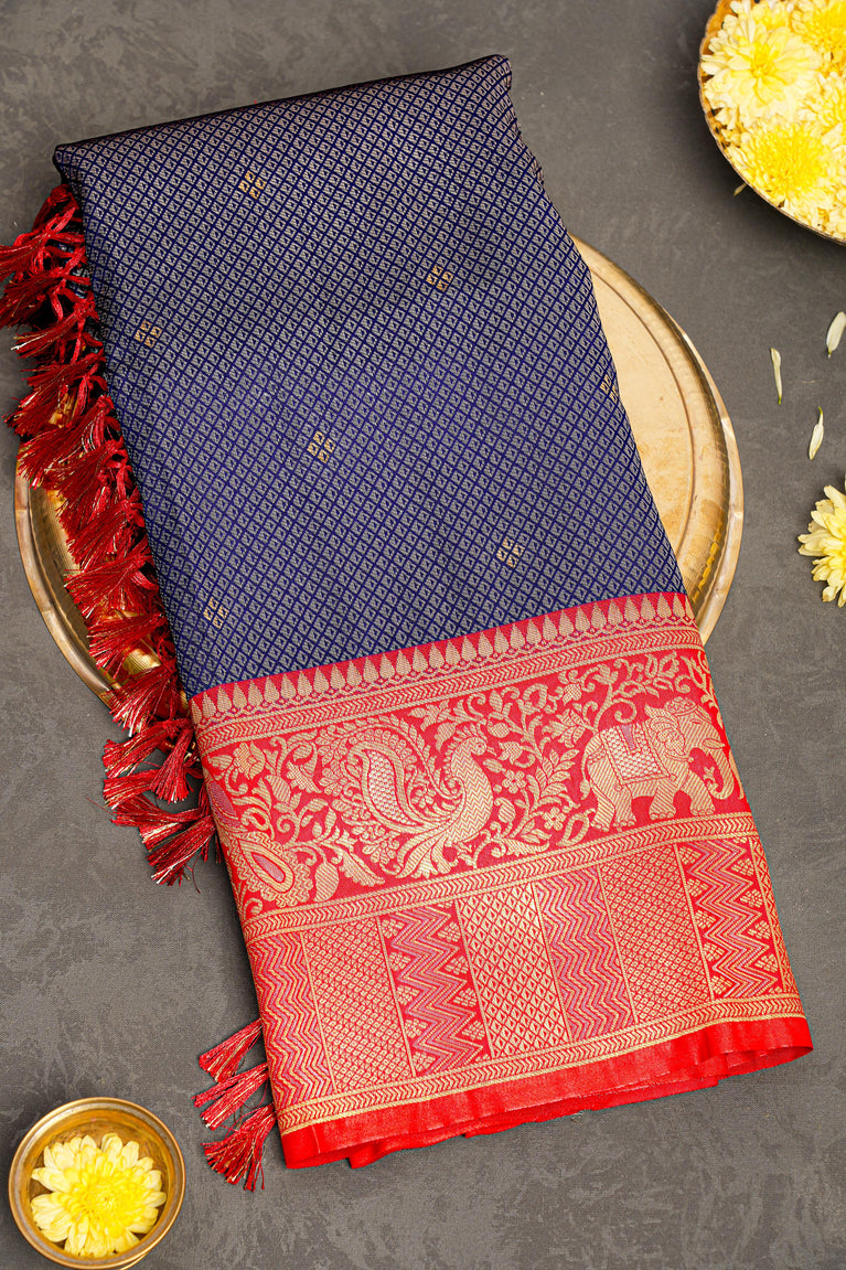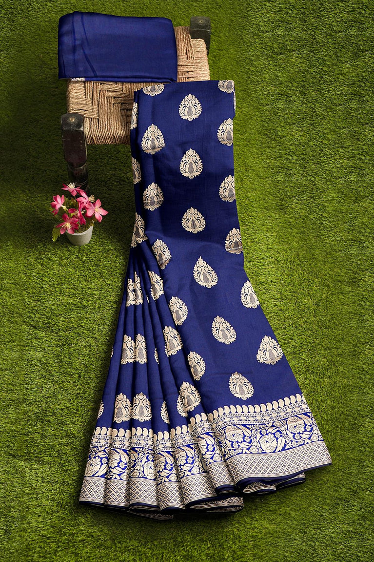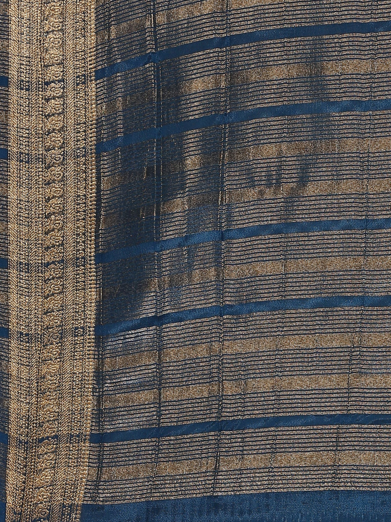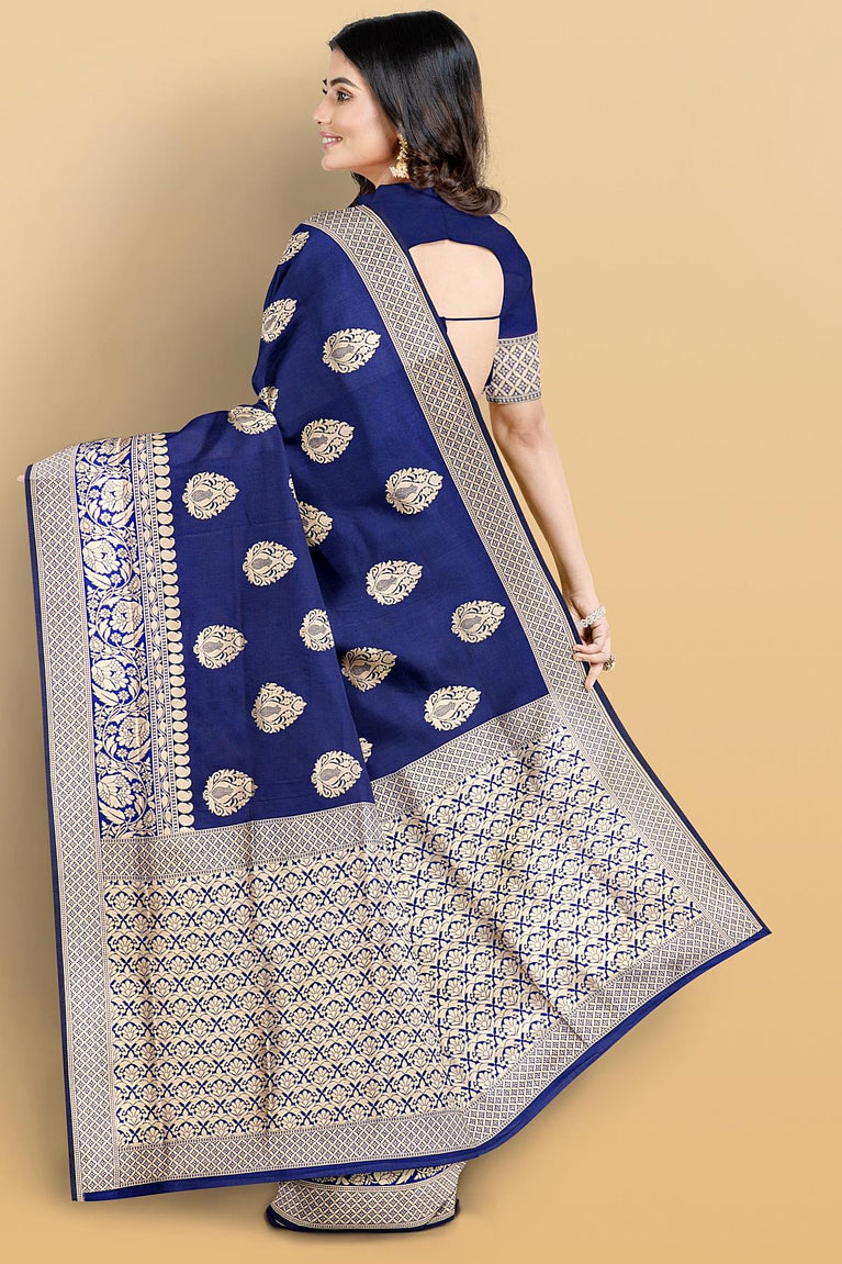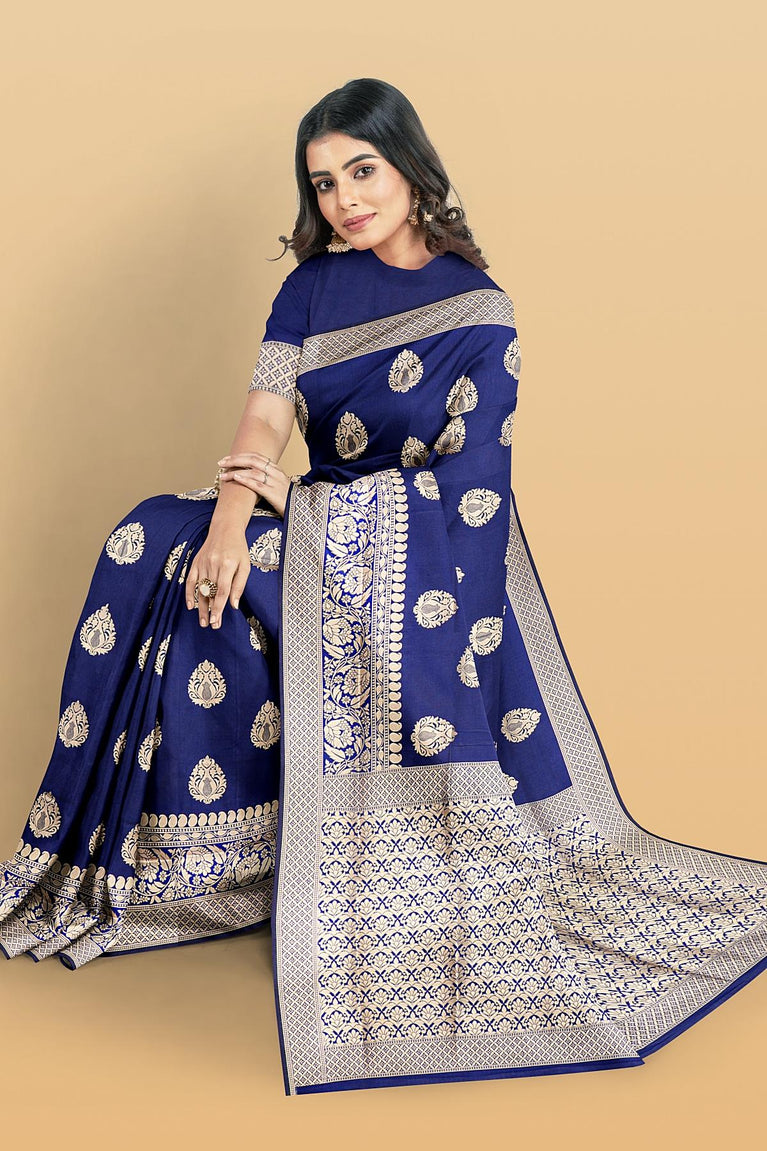 NAVY BLUE and GOLD BUTTIS SILK BLEND Saree with SEMI PATTU