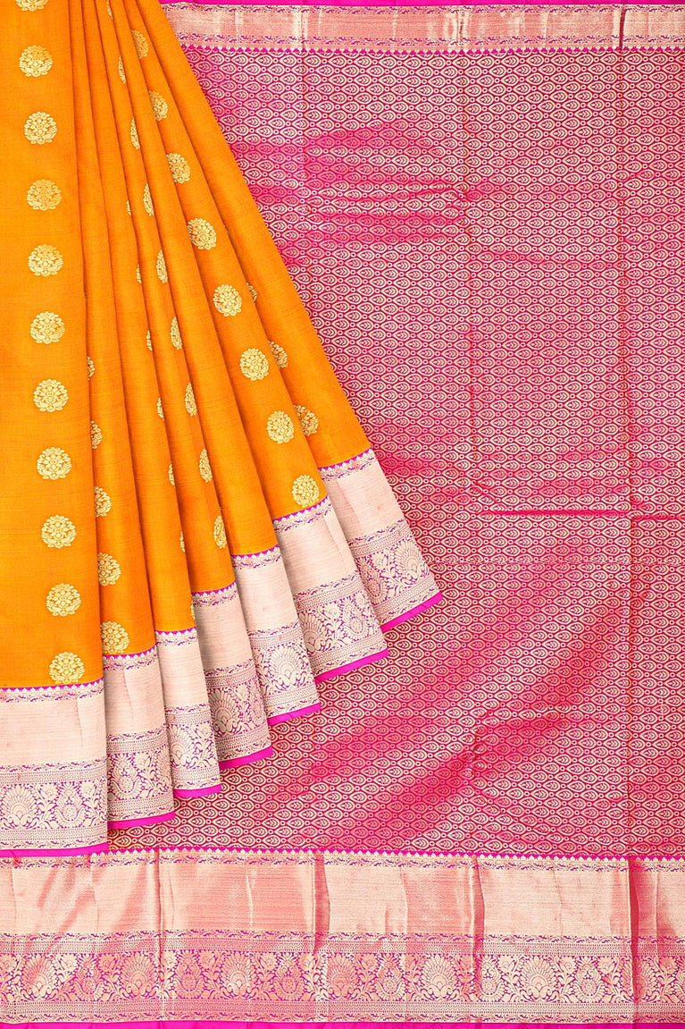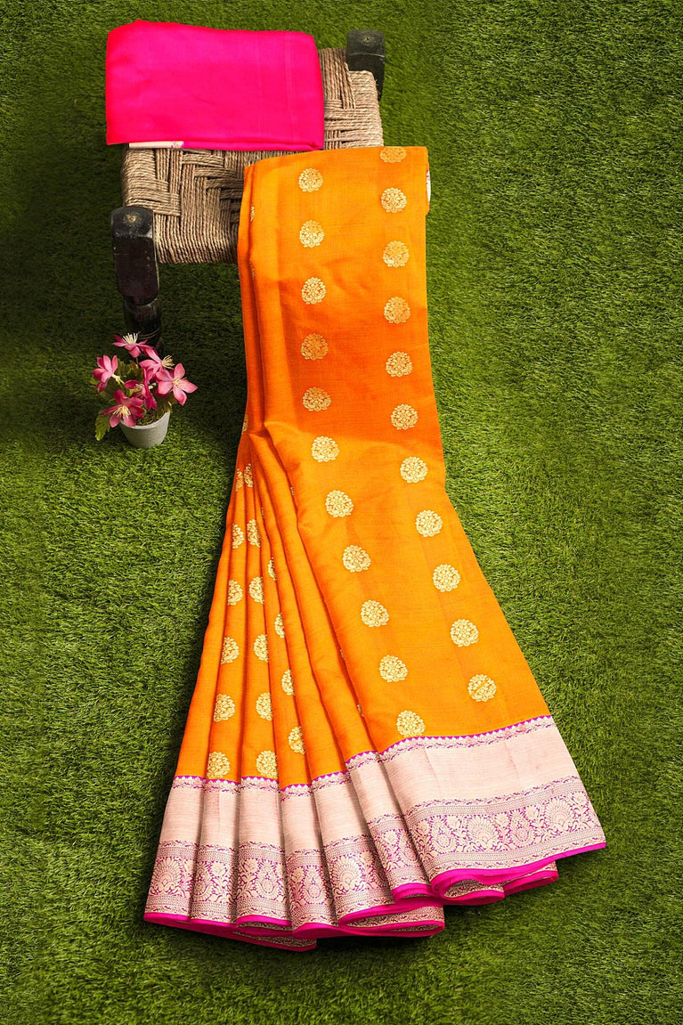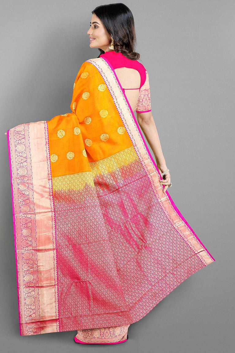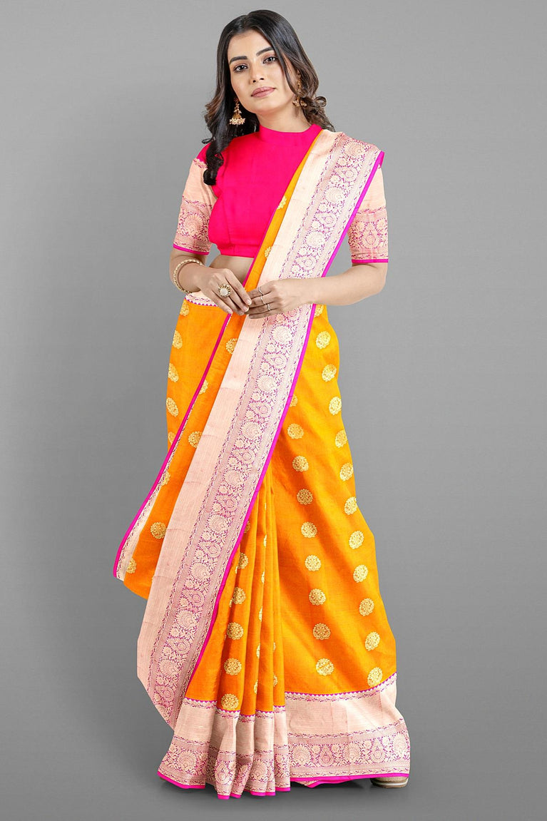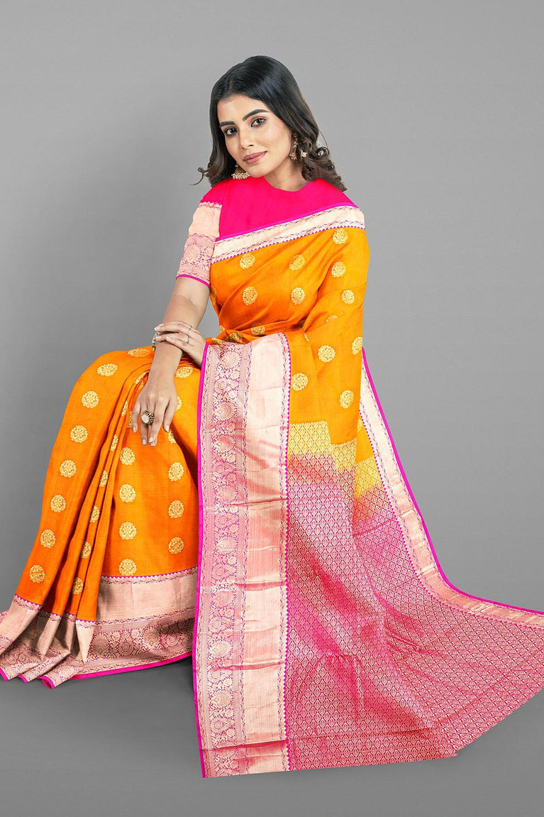 MUSTARD and PINK BUTTIS SILK BLEND Saree with SEMI PATTU