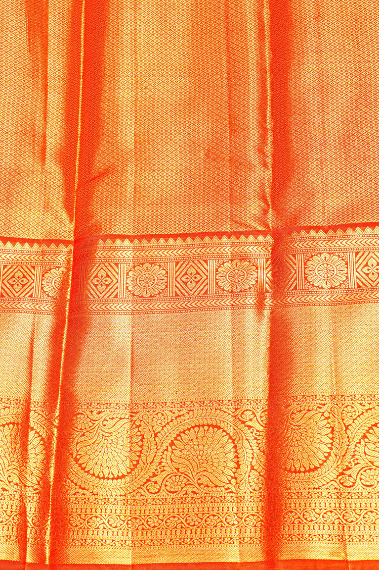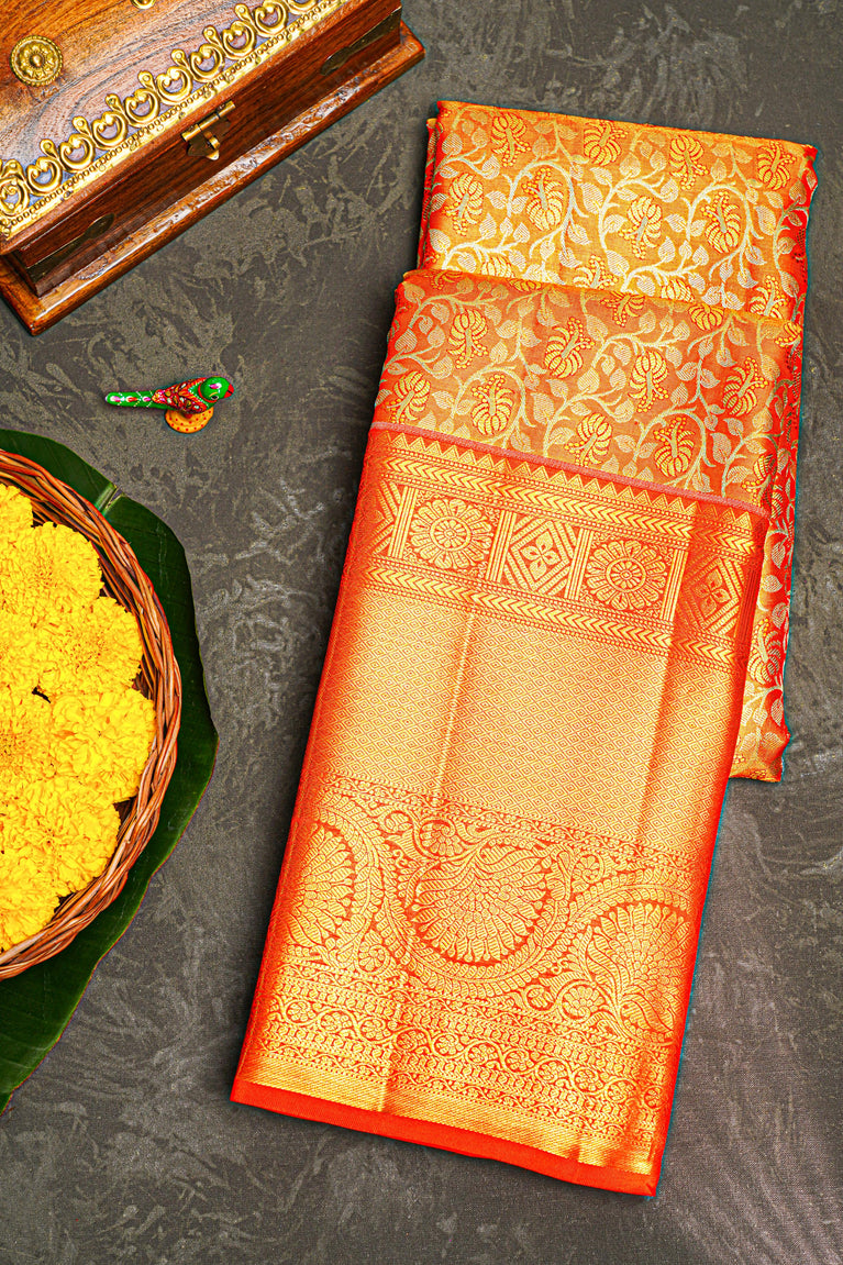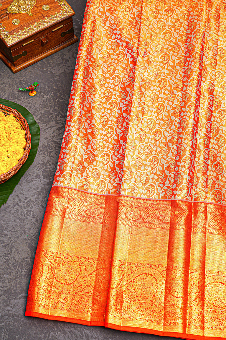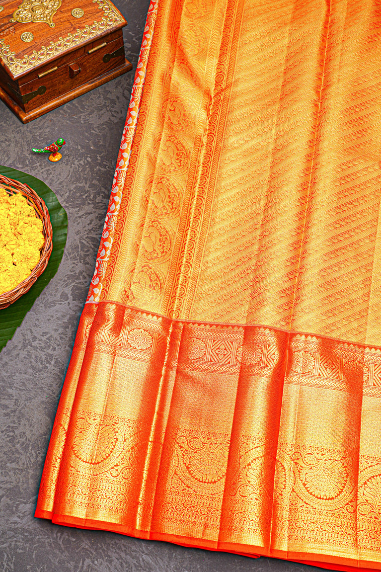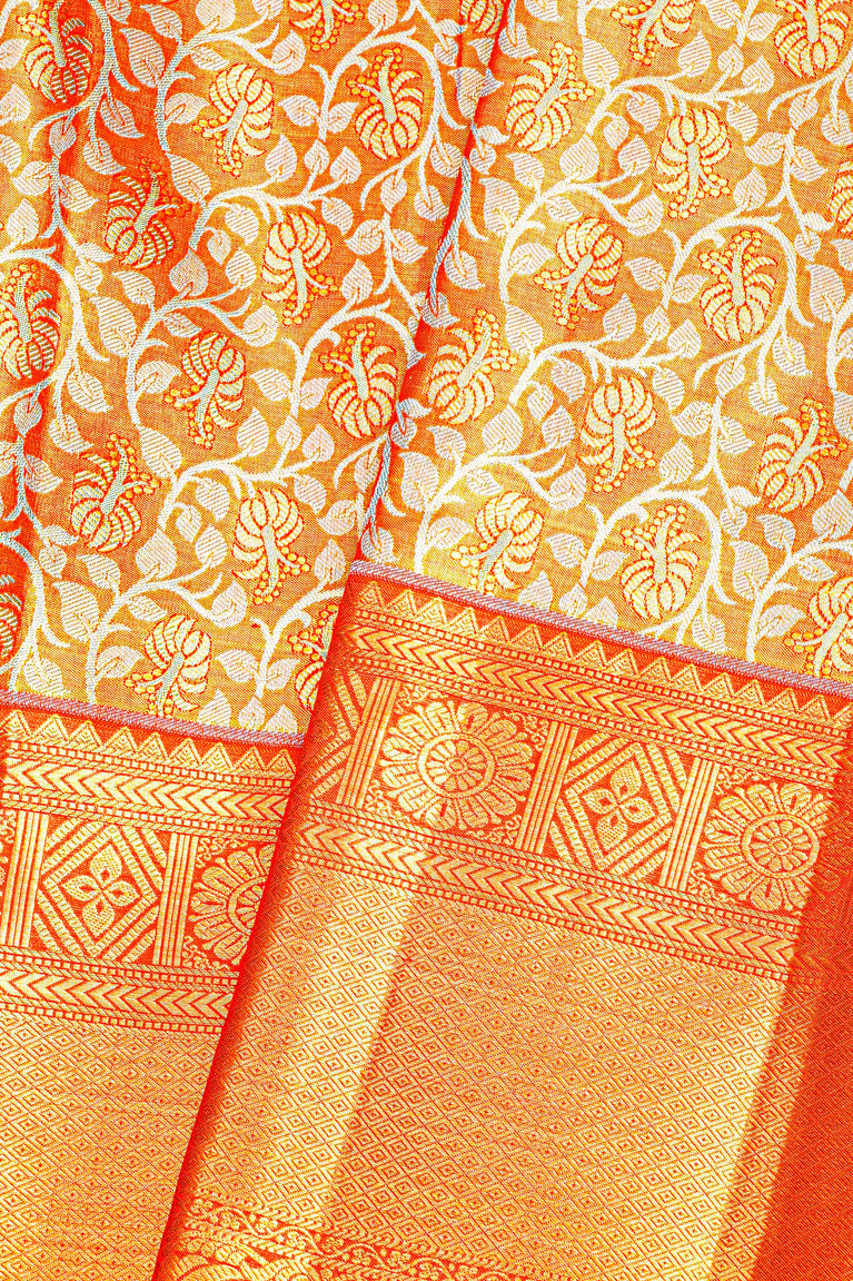 ORANGE and GOLD FLORAL JAAL SILK Saree with KANCHIPURAM