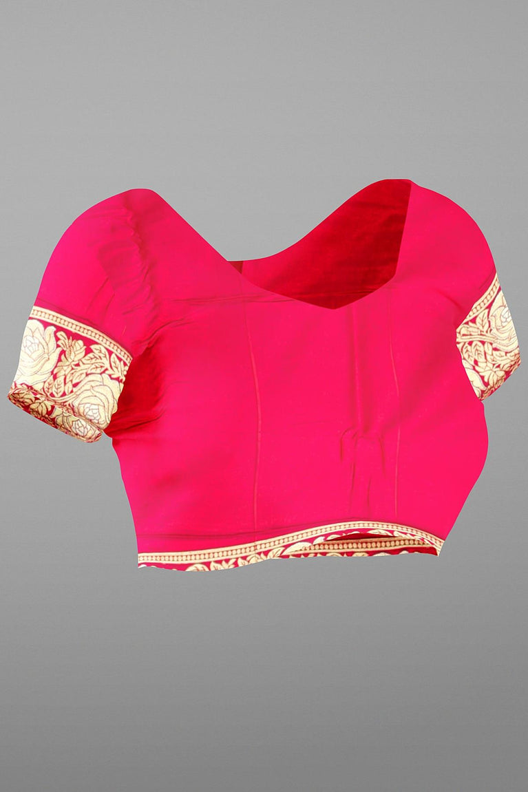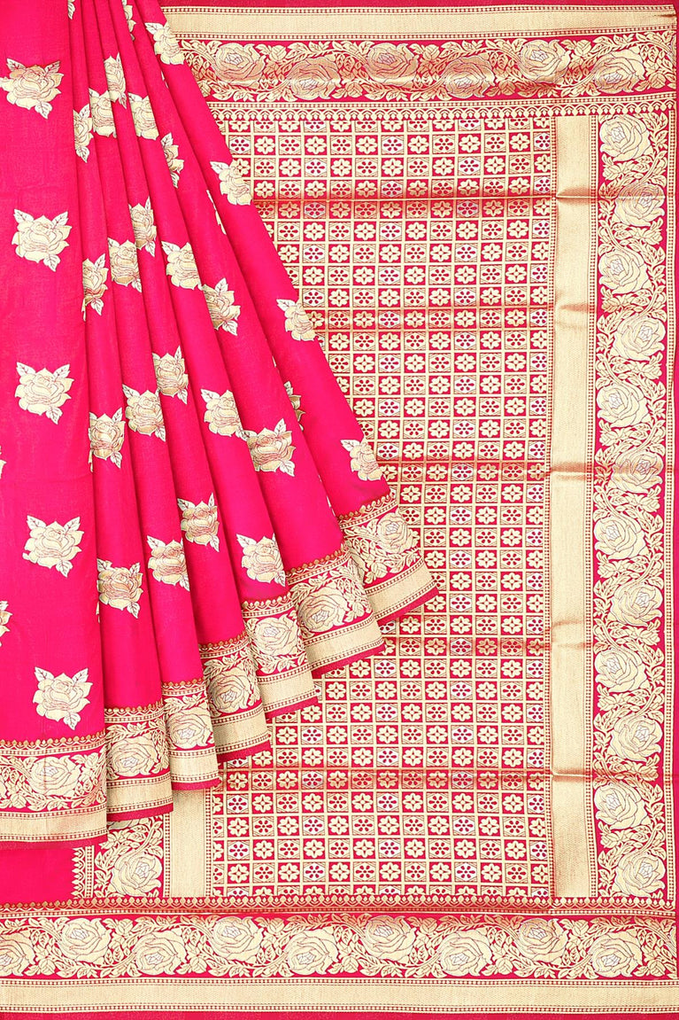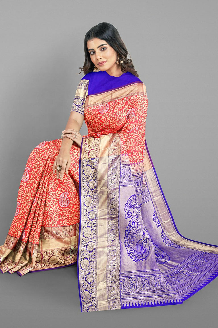 PINK and ROYAL BLUE FLORAL JAAL SILK Saree with KANCHIPURAM