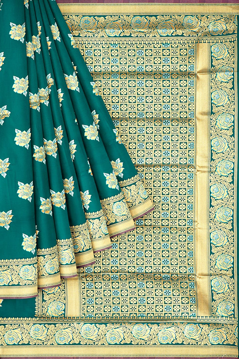 RAMA GREEN and MAGENTA FLORAL JAAL SILK BLEND Saree with SEMI PATTU