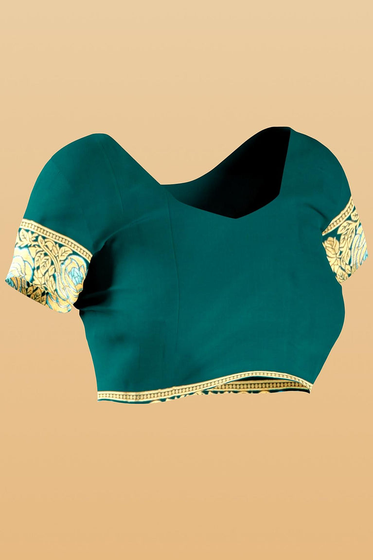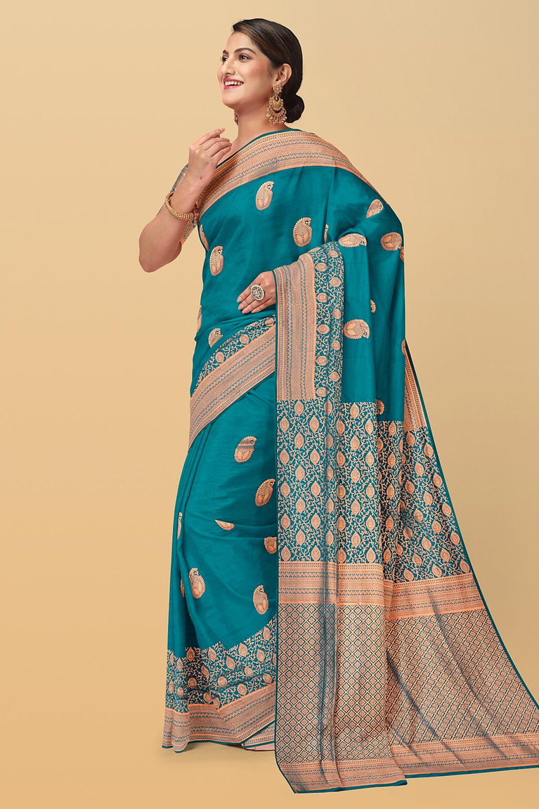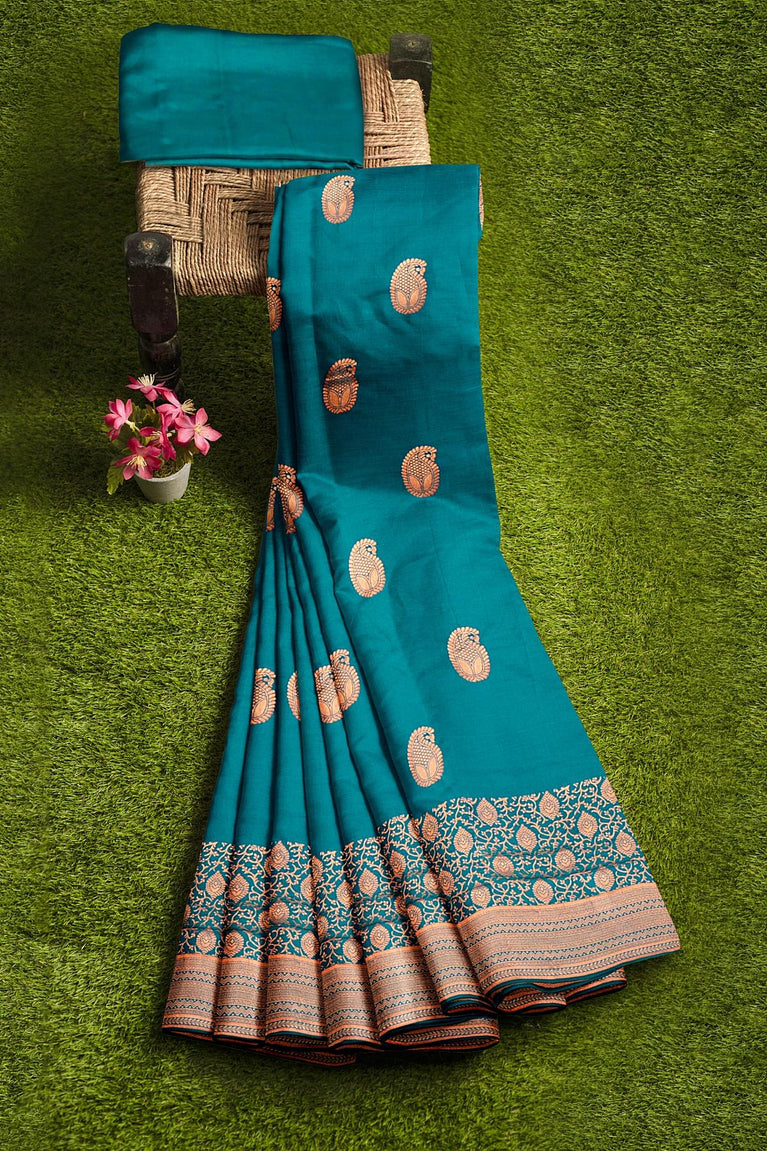 RAMA GREEN and GOLD BUTTIS SILK BLEND Saree with SEMI PATTU