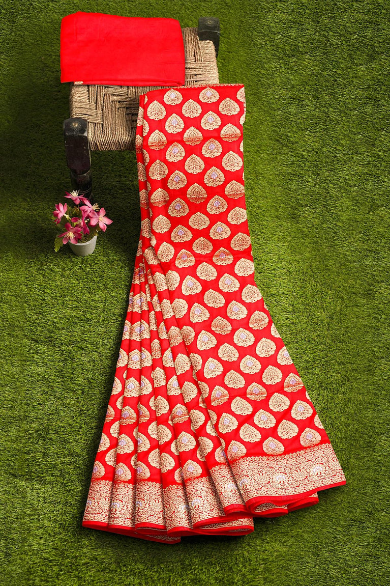 RED and GOLD BUTTIS SILK BLEND Saree with SEMI PATTU