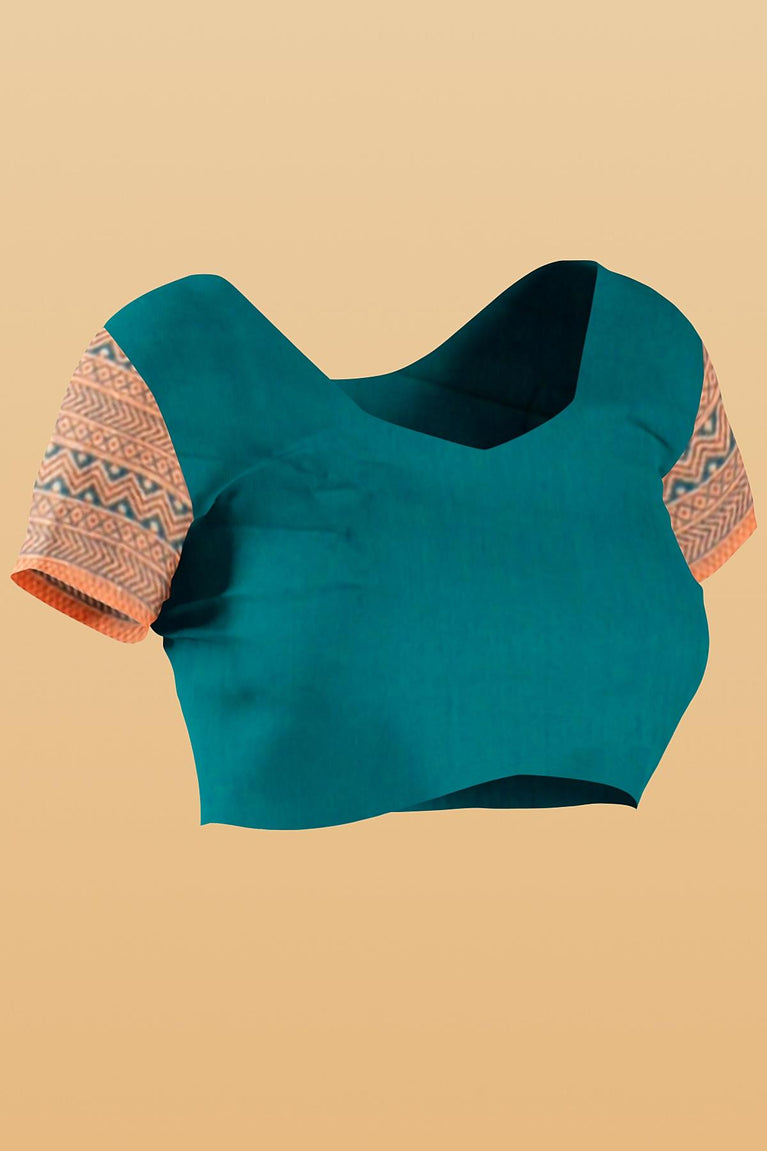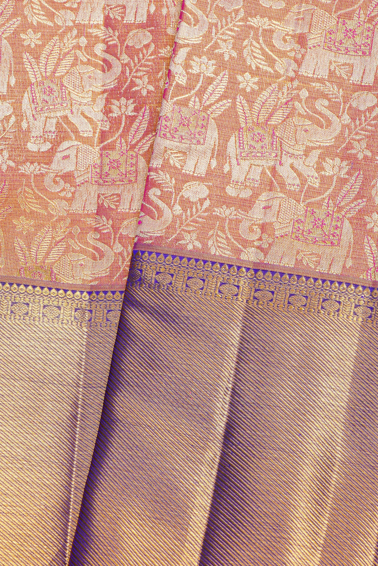 PEACH and ROYAL BLUE FLORAL JAAL SILK BLEND Saree with SEMI PATTU