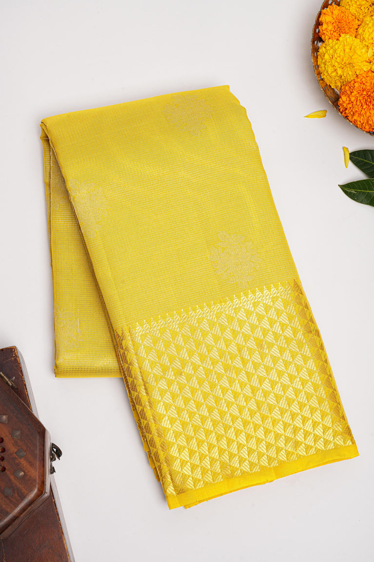 PISTA GREEN and GOLD BUTTIS SILK BLEND Saree with SEMI PATTU