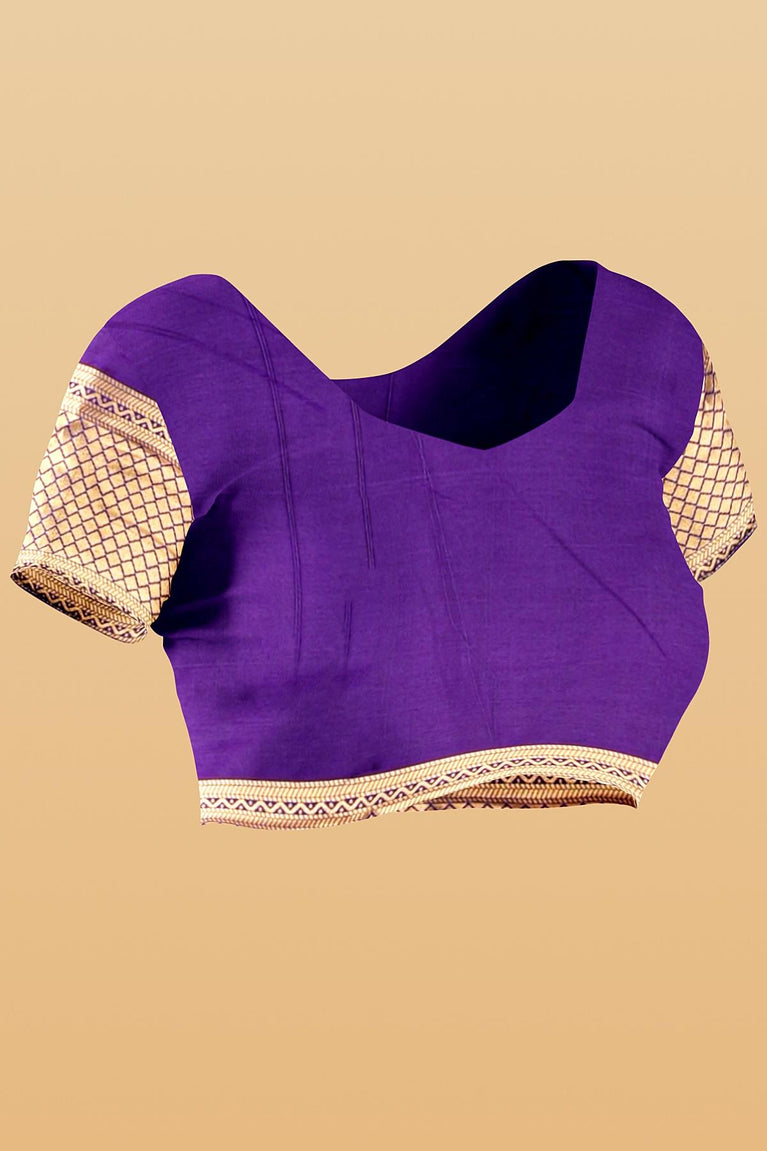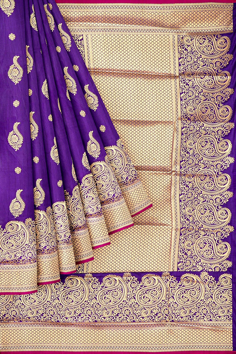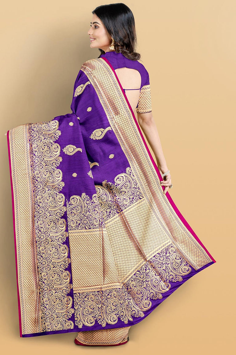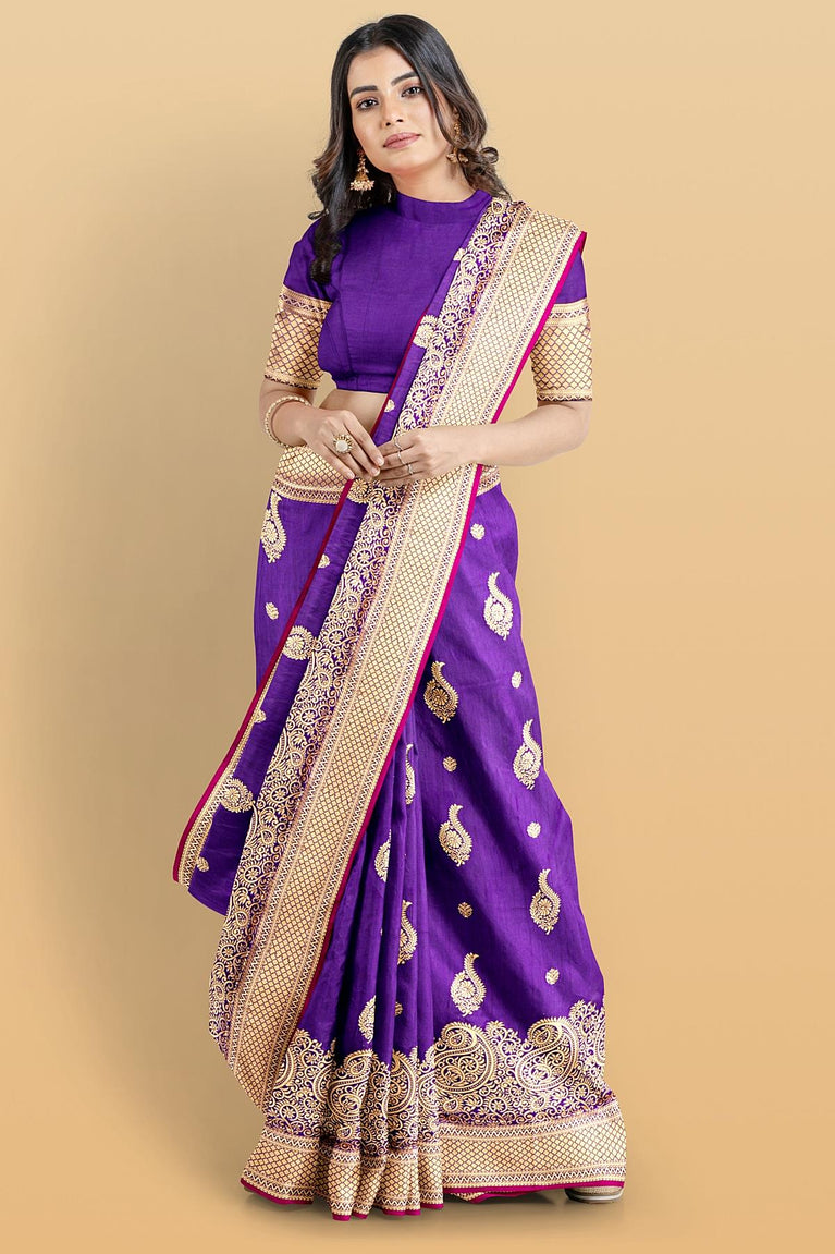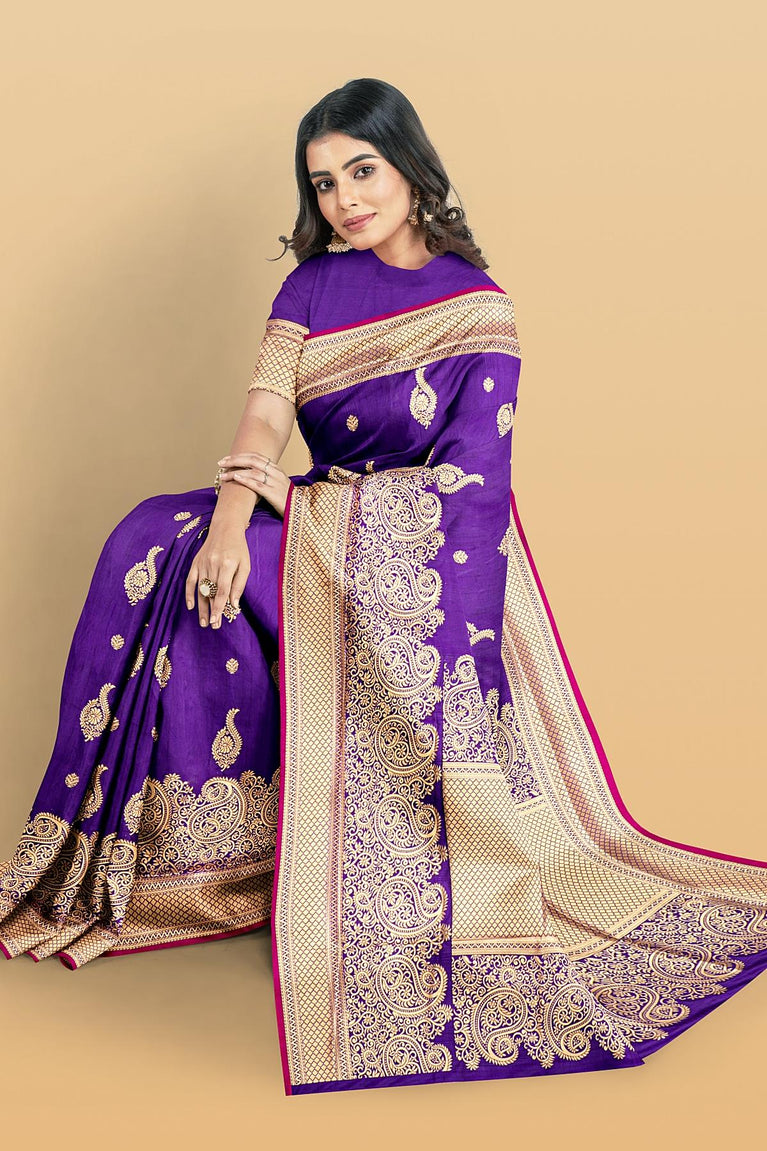 PURPLE and GOLD PLAIN SILK BLEND Saree with SEMI PATTU