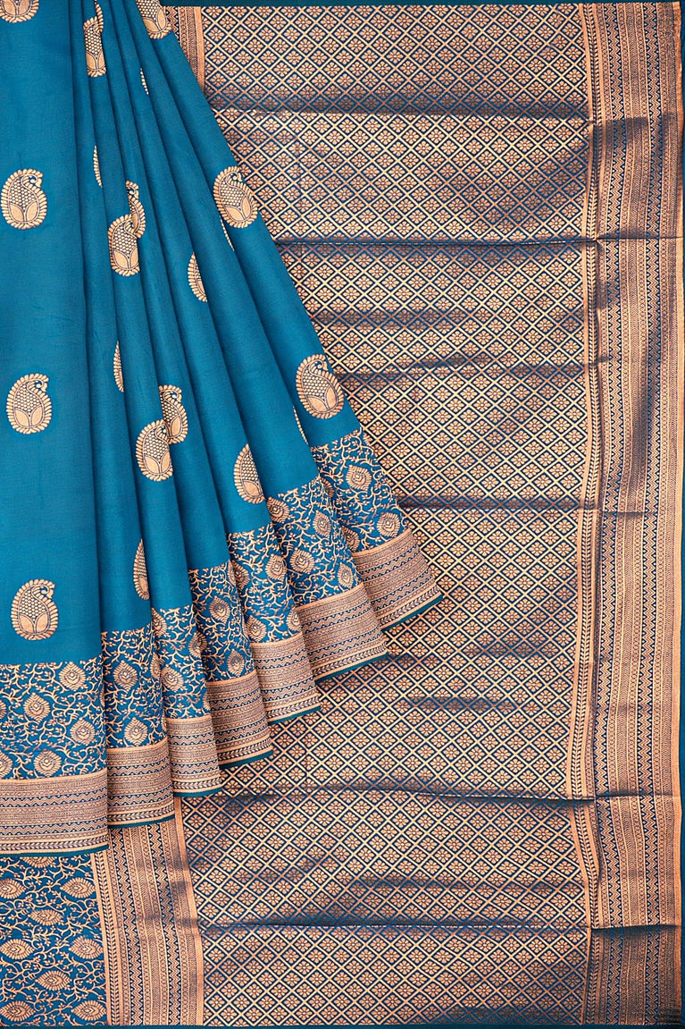 RAMA GREEN and GOLD BUTTIS SILK BLEND Saree with SEMI PATTU