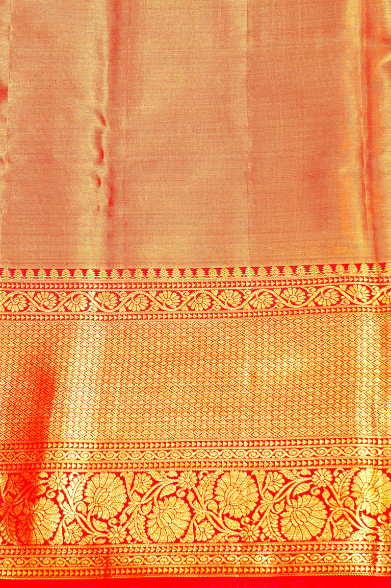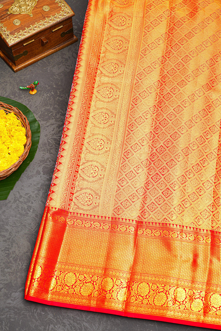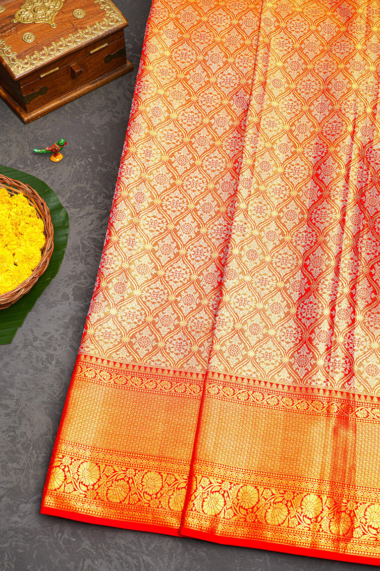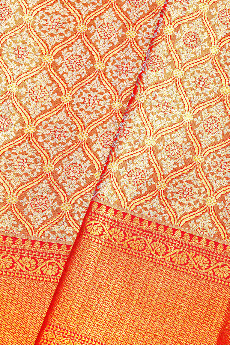 RED and GOLD FLORAL JAAL SILK Saree with KANCHIPURAM