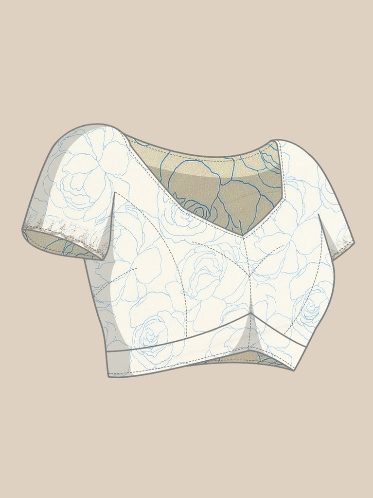 Elevate your traditional wardrobe with this exquisite blue satin saree featuring delicate floral prints. Expertly adorned with Swarovski embroidery, it adds a subtle yet striking sparkle, perfect for special occasions. The smooth satin fabric offers a luxurious drape and comfortable wear, making this saree a sophisticated choice for those who appreciate timeless elegance and exceptional craftsmanship.
