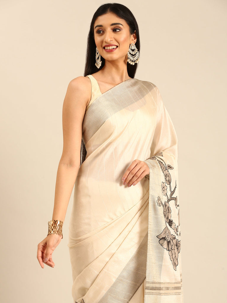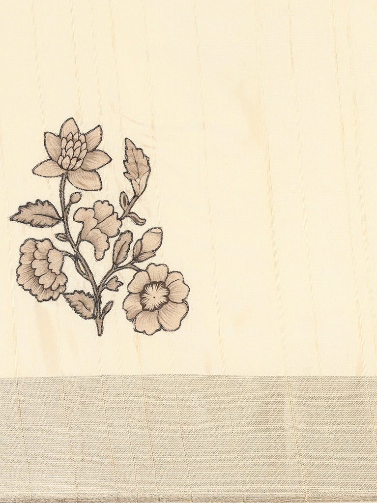 Cream Natural dupion saree with floral print