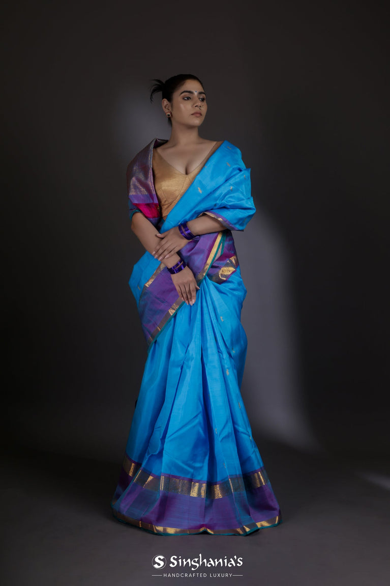 Chlorine Blue Kanjivaram Silk Saree With Floral Buttis Weaving