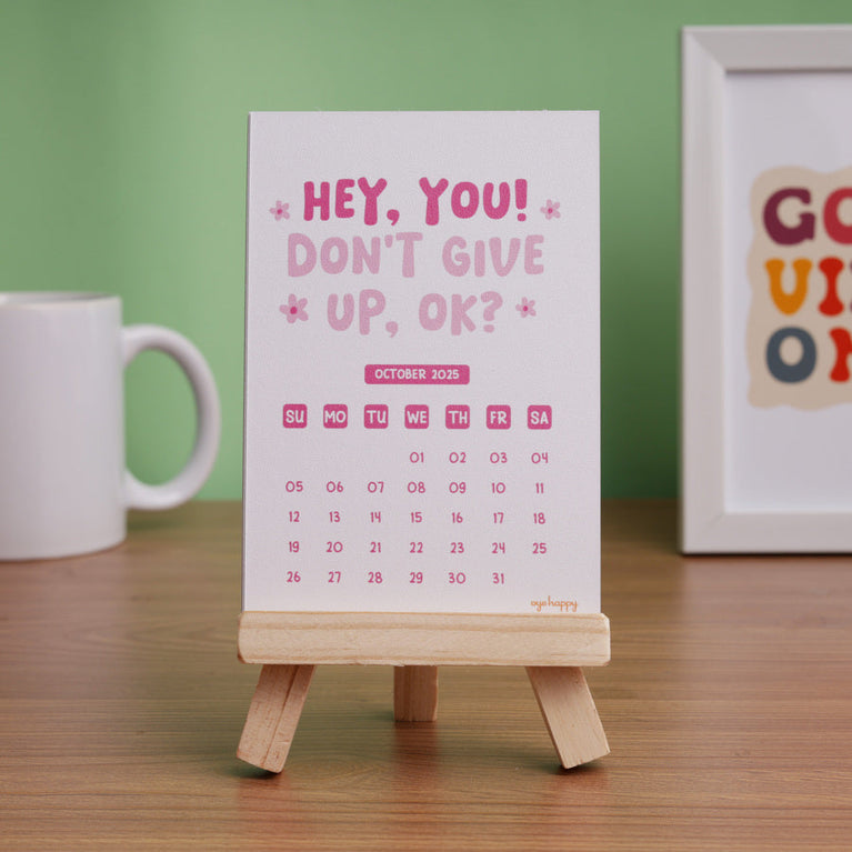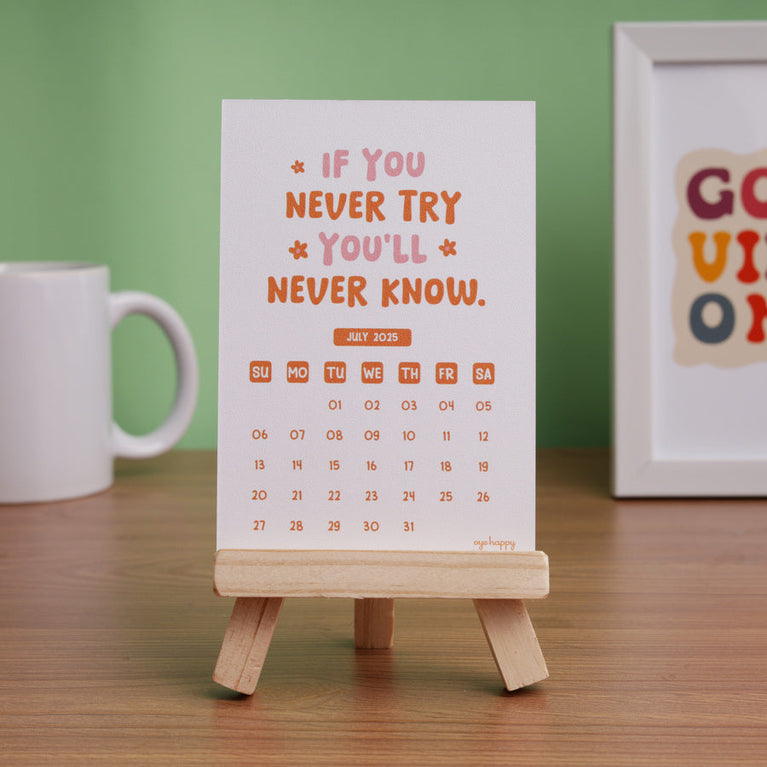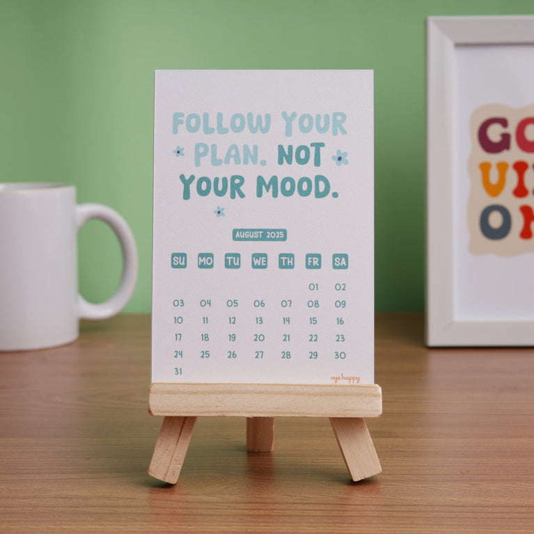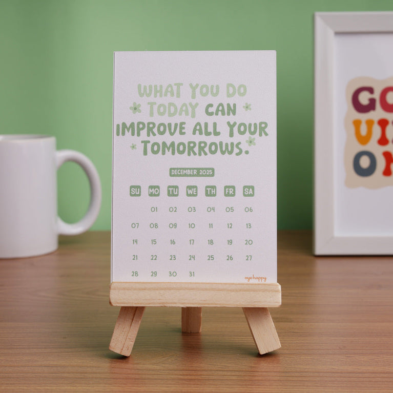 A happy little calendar that keeps your mood in the right place, no matter how the day goes. Every month it gives you a reminder to choose yourself, choose joy, and choose better days.Perfect for anyone who wants their desk to feel lighter and more positive. And a lovely new-year gift for someone who could use a bit more balance.Specifications-Size of the Easel : 4.5 x 3.5 inchesSize of Cards : Size : 3.4 x 5 inches