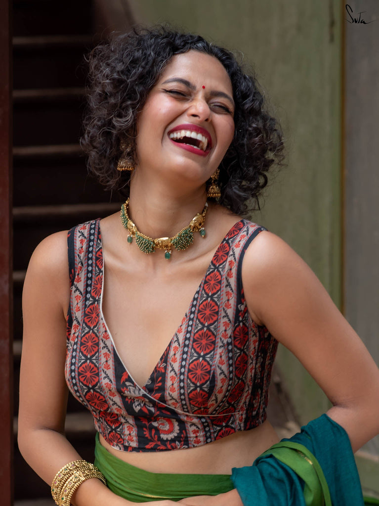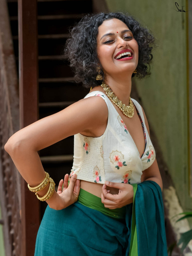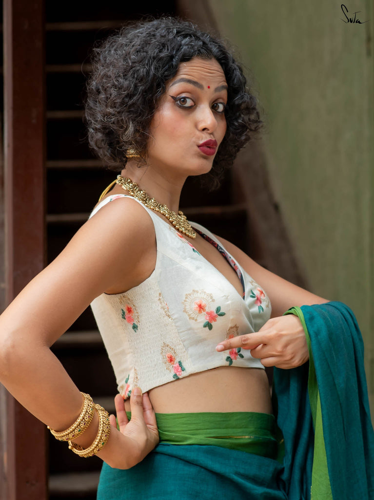 Blouse : Su, the model is wearing size S blouse and the saree is Playful Sitara