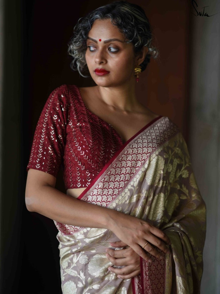 Cotton silk is a blend of cotton and silk. Clothes made of this fabric are lightweight, soft, breathable, and have an elegant sheen. This hybrid fabric is especially popular as it can be worn with comfort and ease during both summers and winters. The fabric is embellished with delicate zari details, to add a regal touch.