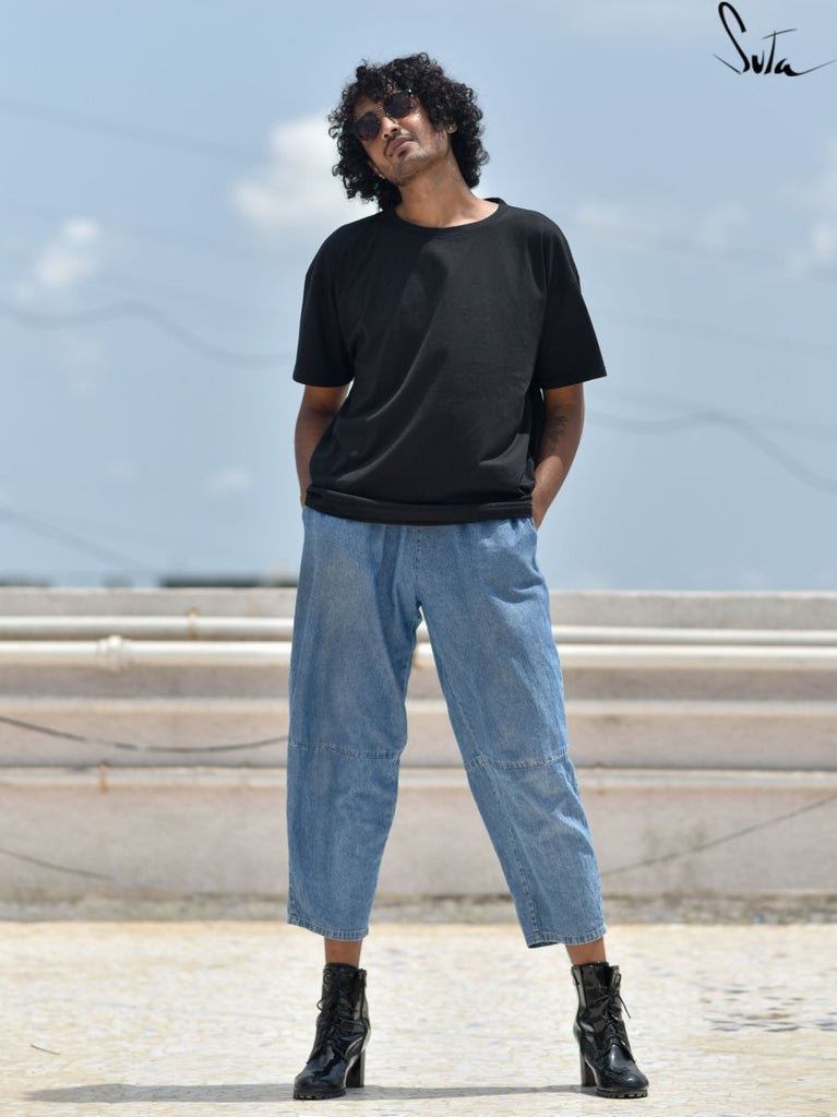 These black cotton trousers are so comfortable and easy to style, that they will make a statement on their own.