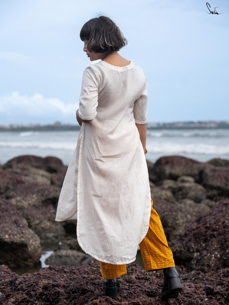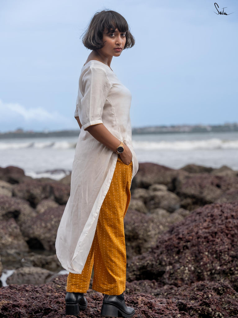 A jewel in the wild, the burr mallow flower grows freely and abundantly in the wild, sharing its beauty with all those who come across it. But its eye-pleasing looks aren’t the burr mallow’s only strength – it has so much more to give in the form of food, fibre and medicine, all of which make the burr mallow indispensable to those whose lives it touches. Like the flower, this stunning cotton blouse will earn itself a permanent place of value in your life.