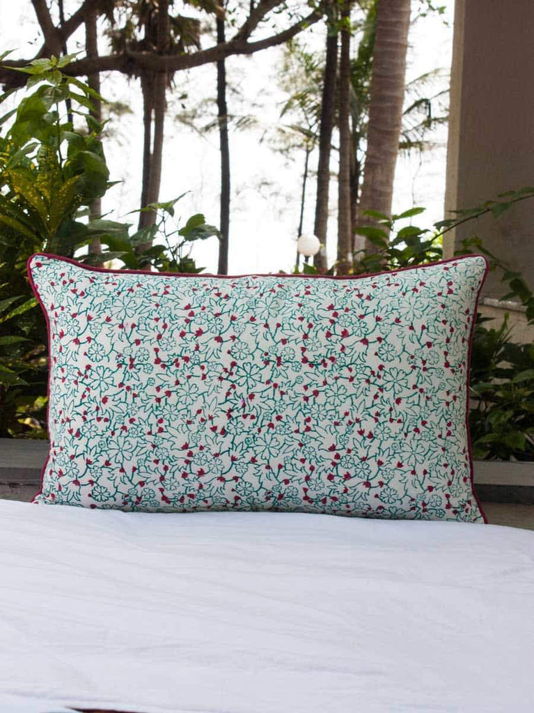 Kalpavriksha Block Printed Cotton Cushion Cover - 12 X 20 Inch