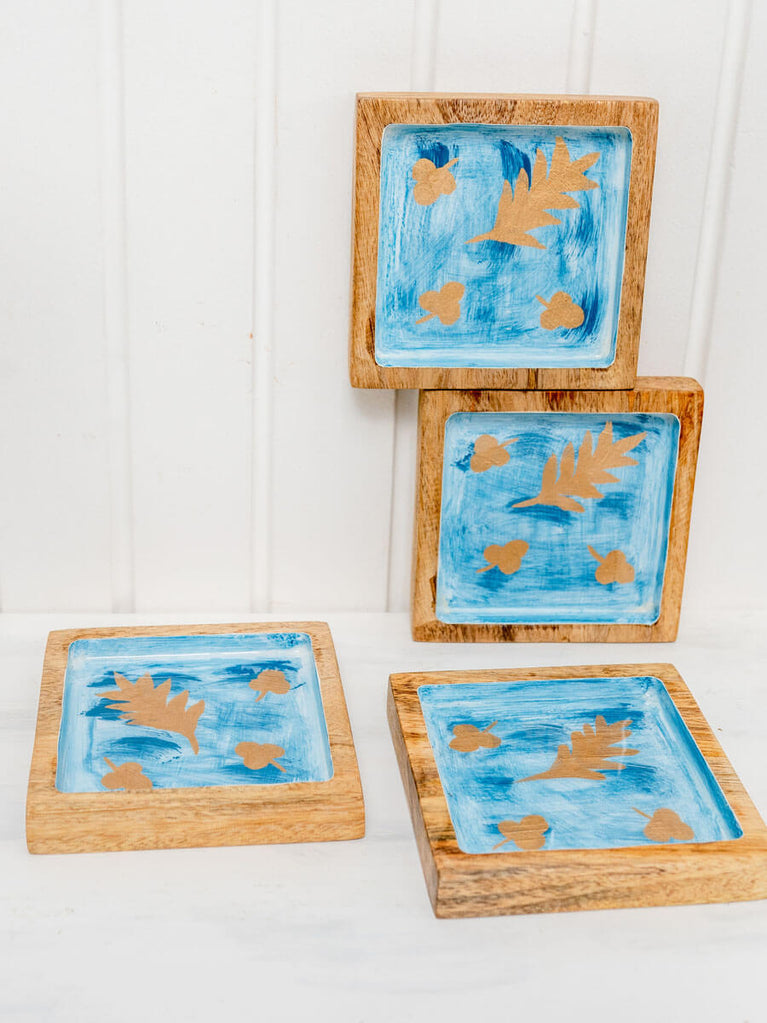 Set of 4 - Gold Leaf Wooden Coasters
