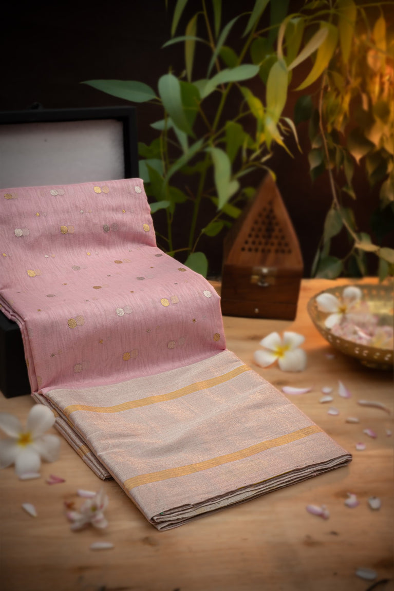 Varamahalakshmi Baby Pink & Gold Chanderi Buttis Saree