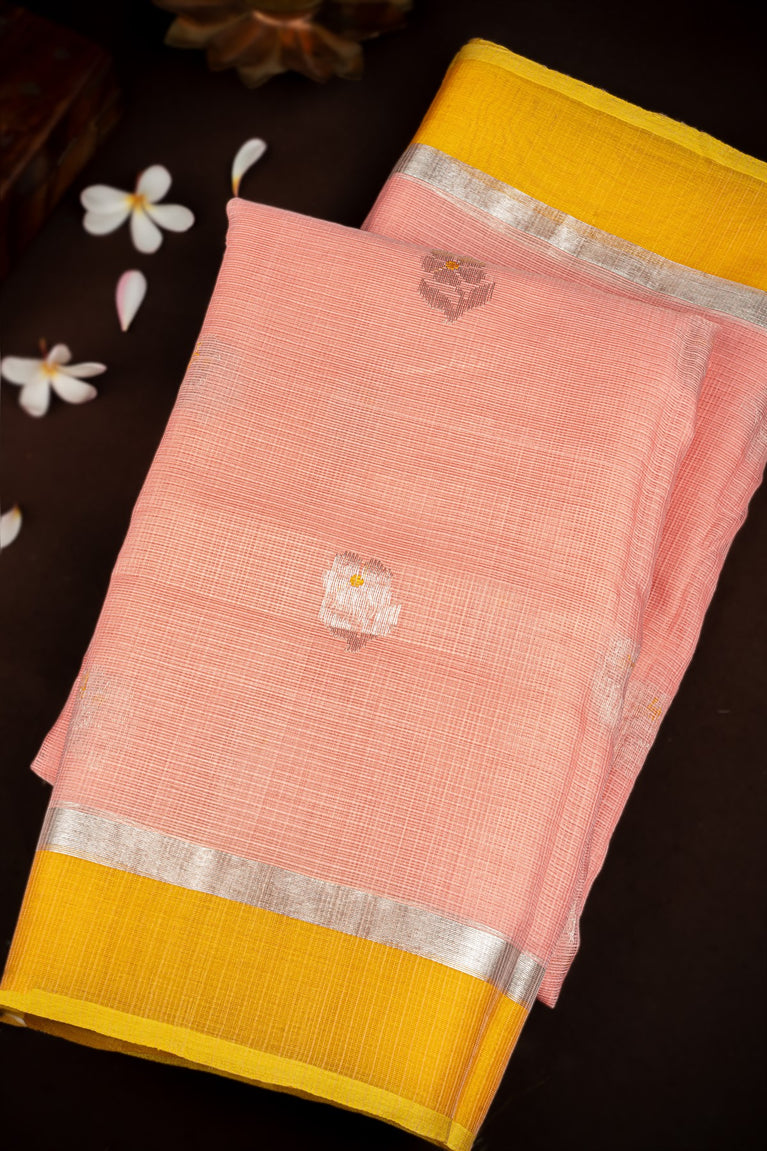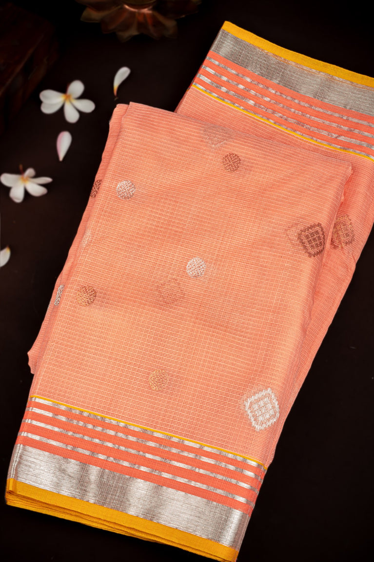 Varamahalakshmi Peach & Yellow Zari Kota Buttis Saree