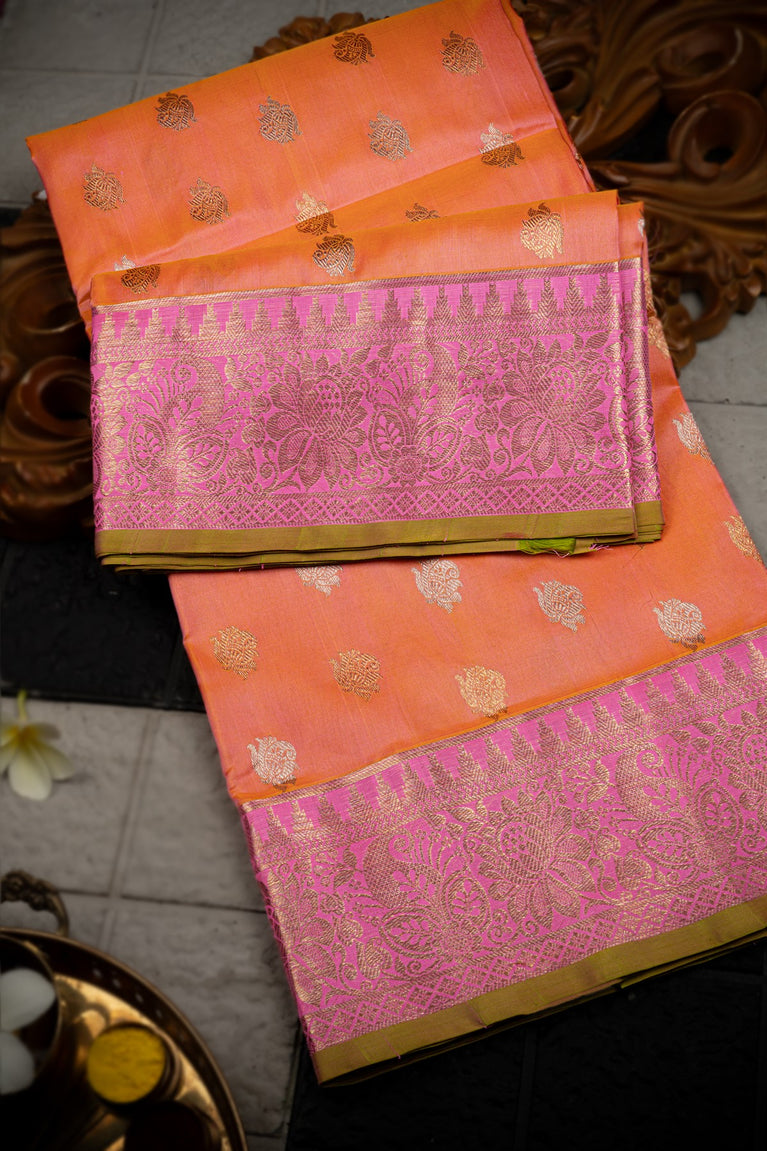 Varamahalakshmi Peach & Mustard Zari Kota Buttis Saree