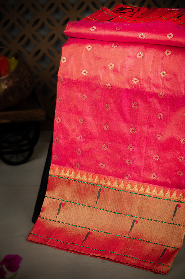 Varamahalakshmi Peach Pink & Gold and Red Paithani Buttis Saree