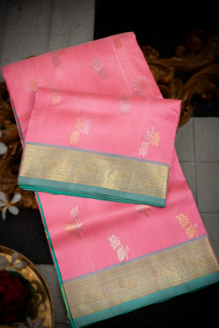 Varamahalakshmi Peacock Blue & Light Pink Kancheepuram Florals Saree