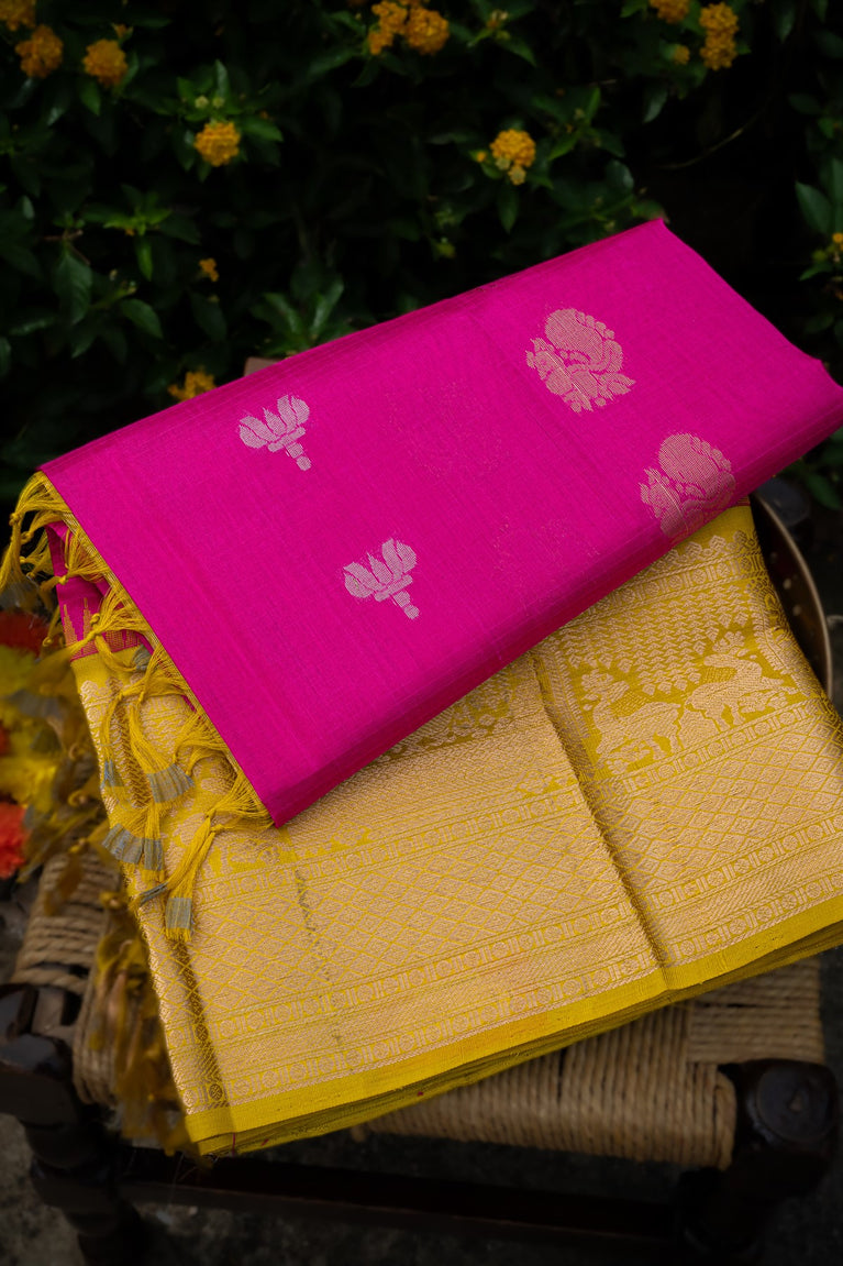 Varamahalakshmi Rani Pink & Mustard Kuppadam Motifs Saree