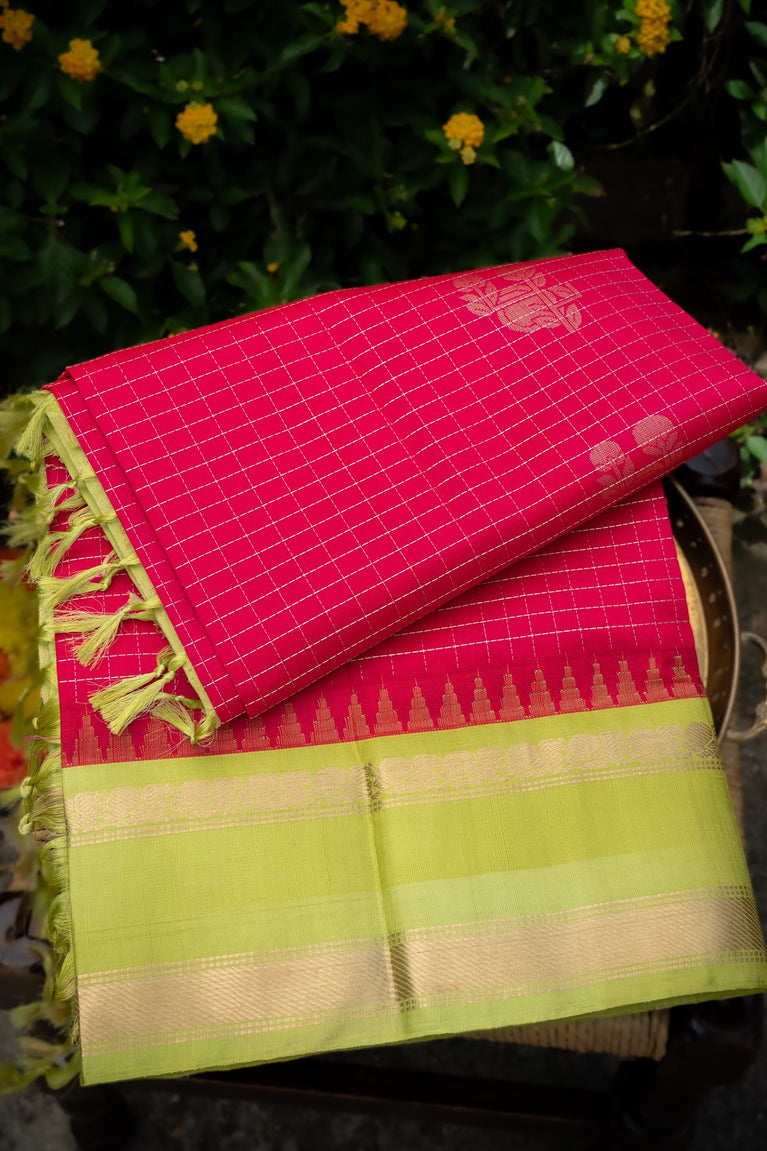Varamahalakshmi Rani Pink & Olive Green Kuppadam Checks And Buttis Saree