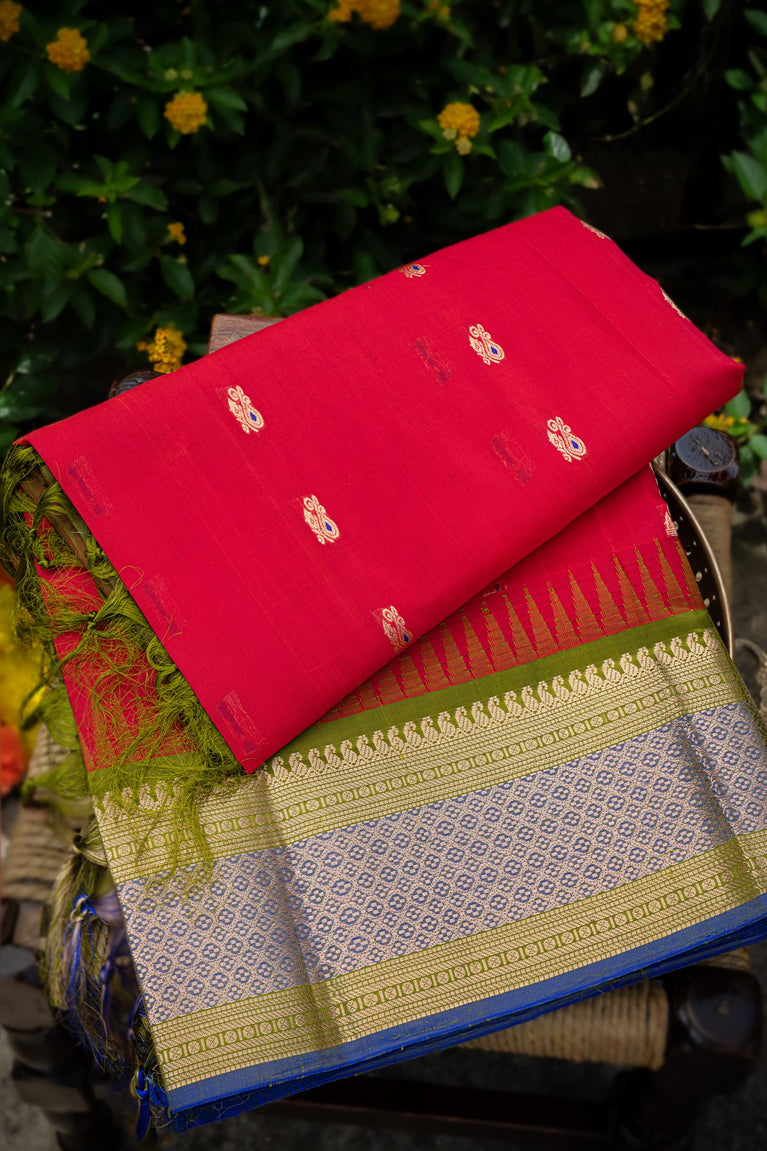 Varamahalakshmi Red & Olive Green Kuppadam Buttis Saree