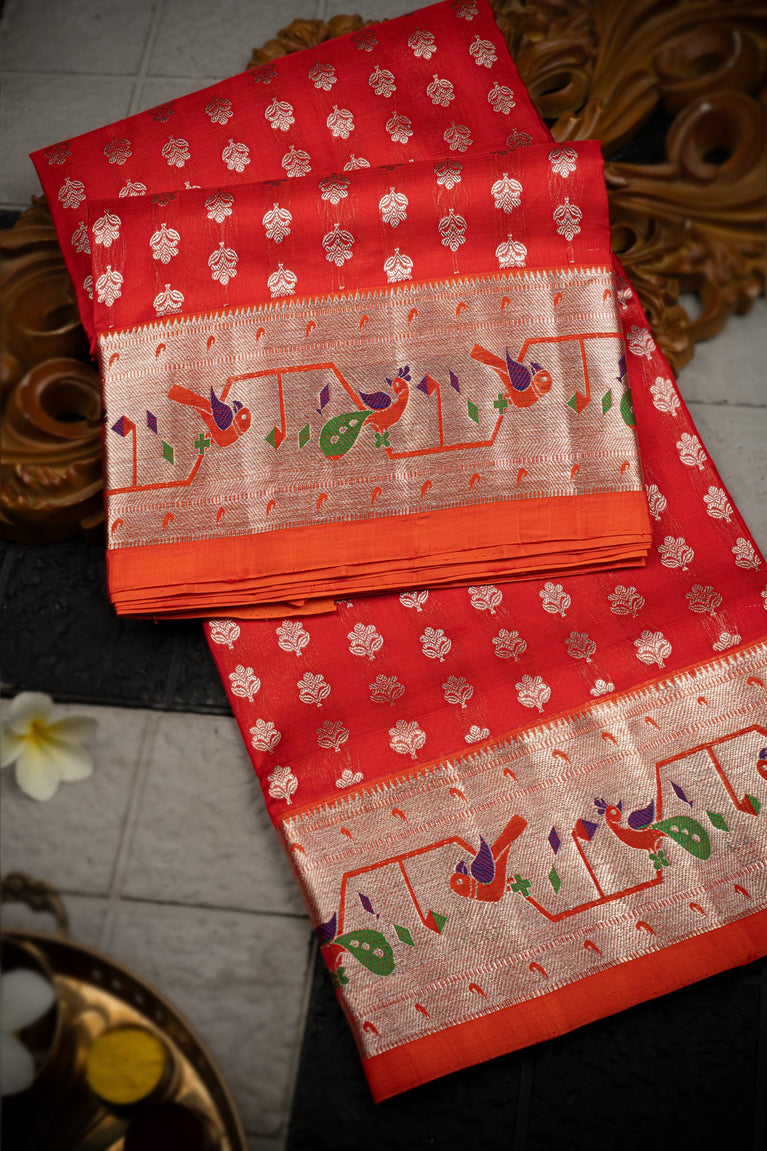 Varamahalakshmi Red & Orange Uppada Buttis Saree