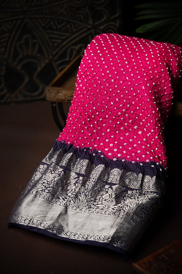 Varamahalakshmi Rani Pink & Navy Blue Bandhani Bandhani Saree